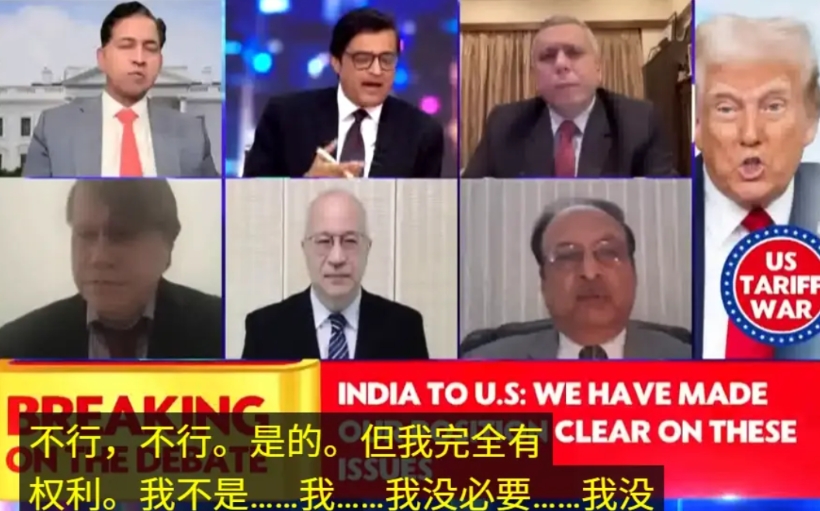 在印度又被加了25%关税达到50%之后,阿纳布邀请了五位嘉宾上节目。首先他盛赞了印度政府的表现,称莫迪像是“一个真正有政治智慧的领导人”,然后大骂特朗普是愚蠢的,忽视了“未来将统治全球供应链”的印度,表示印度将采取与中国一样的应对方式,来击退美国的关税霸凌。