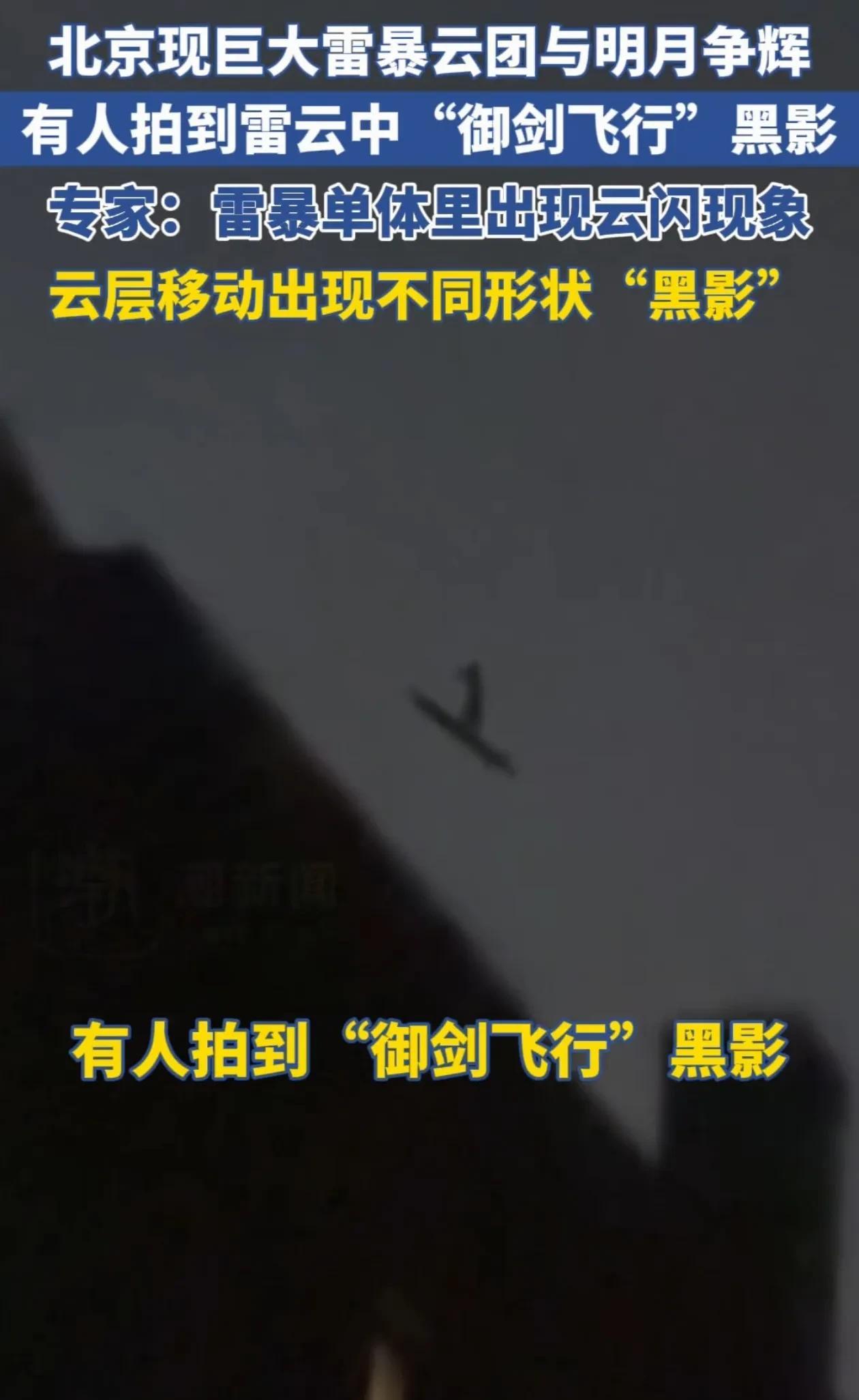 解释不清了!北京,赶上雷暴天儿,有市民举手机拍闪电,结果镜头一晃,突然发现云层里冒出个黑影,身子细长,底下拖着条斜杠,活脱脱像武侠片里的大侠踩着剑飞! 视频一上网,立马炸了锅:“北京惊现修仙者渡劫?” 专家赶紧出来辟谣:“哪有什么御剑飞行,就是雷暴单体捣的鬼。” 原来那晚的雷暴属于“孤军作战型”,云团直径就几公里,闪电全憋在云层里放电。 云顶带正电,云底带负电,两边电压差一大,唰啦就放电。 偏巧云被风吹着跑,闪电的光影把云块凸凹不平的轮廓投出来,乍看可不就像个人影飘着。 这黑影能火,关键是戳中了文化基因。大家打小看《蜀山剑侠》,御剑飞行早成集体记忆。 云层影子但凡有点人形带条“剑”,大伙儿自动脑补修仙画面。要换成欧美人拍着,保不齐说是“外星人冲浪板”。 专家辟谣快,但科普还得补细节。光说“正常现象”太笼统。其实NASA早记录过类似“黑暗闪电”,飞行员常见不怪。 要是配上云层放电动图,再解释下北京这次黑影特别像人,是因为低角度仰拍,云底褶皱的投影被拉长了,道理就跟皮影戏似的,大伙儿肯定更信服。 较真看,想象力比黑影更珍贵。科学能解释乌云放电,但解释不了为啥人非把它想成御剑飞行。这种“浪漫化联想”其实是人的本能,把未知往熟悉的故事里套。 下次再遇类似事,不妨学网友的豁达:先乐呵转发,再坐等科普,最后感叹句“自然真会玩”! #专家解读北京夜空黑影“御剑飞行”#