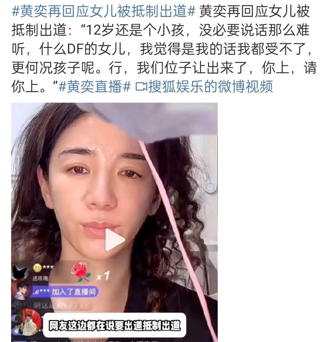 黄奕直播中再次回应了! 回应女儿被抵制出道,喊话网友放过孩子,所有的万箭穿心冲她