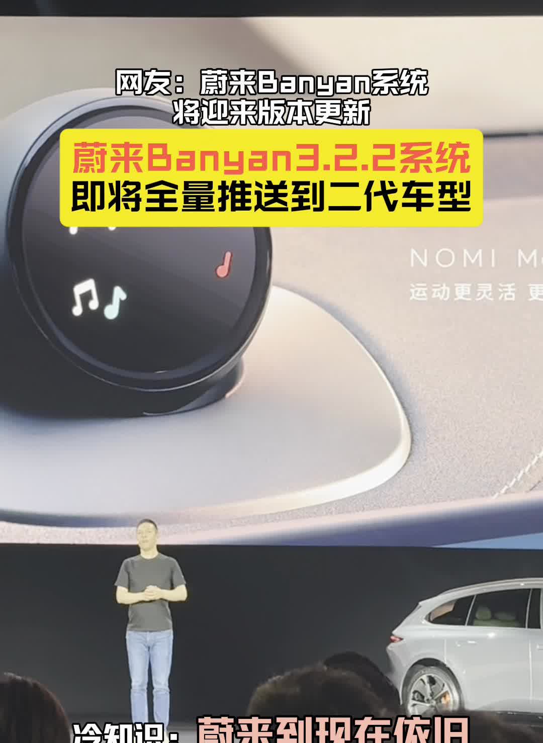 网友:蔚来Banyan系统将迎来版本更新。 蔚来Banyan3.2.2系统即将