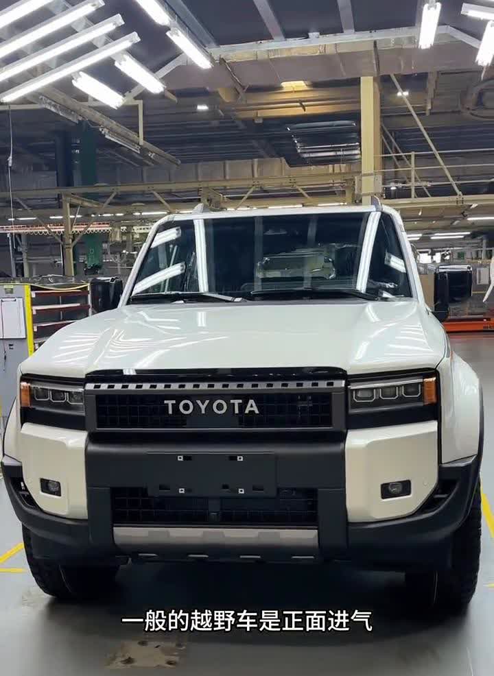 新普拉多进气设计,安全涉水。 普拉多的涉水能力到底有多强?一般的越野车是正面进气,涉水路况很容易进入进气口,造成发动机的损坏。新一代普拉多改变了进气的方式,采用的是高位夹仓弯形进气设计,更好的满足高难度越野的需求,保证700mm甚至800mm安全涉水。