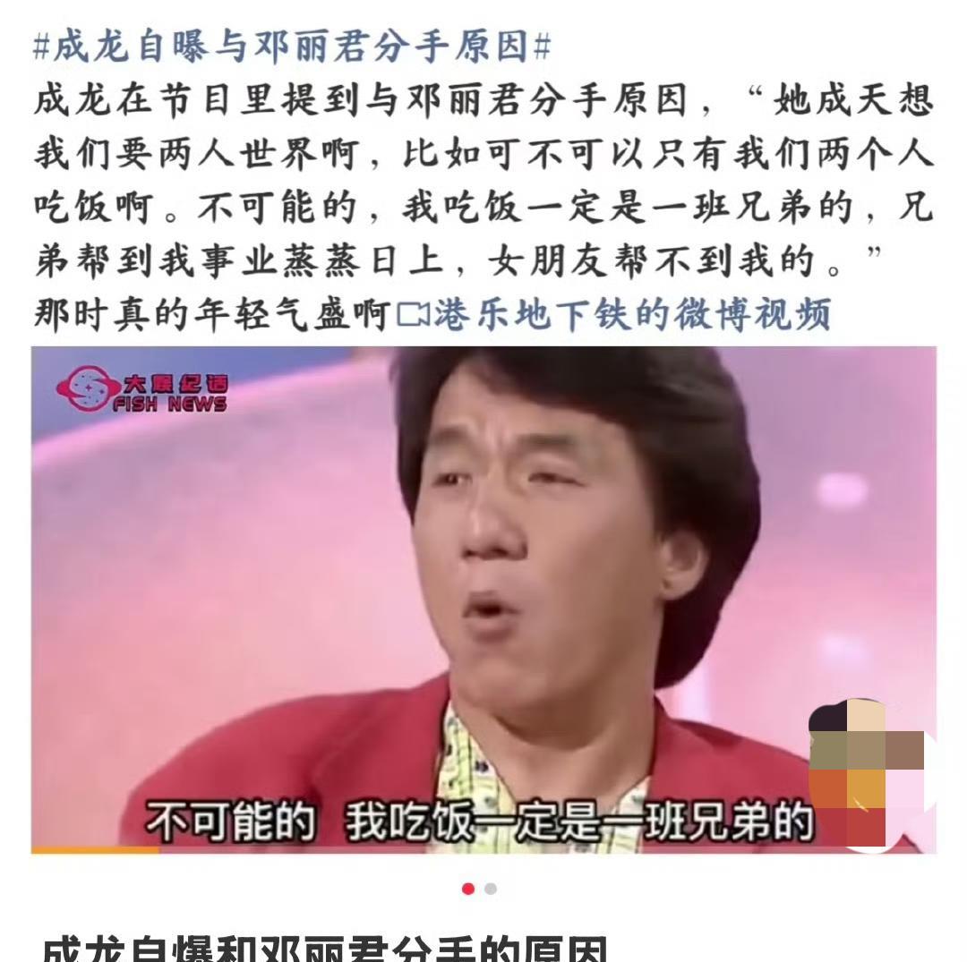 成龙自曝与邓丽君分手原因突然热搜第一! 还以为是他近期在节目中自曝的, 打开后不知道是多少年之前的事情了, 成龙都70多岁了,邓丽君也离世多年了。 谈这些还有意义吗? 网友感叹:当巨星褪去光环,他们的遗憾与普通人并无二致,唯余那句“年少不懂珍惜,懂时已惘然”的叹息。