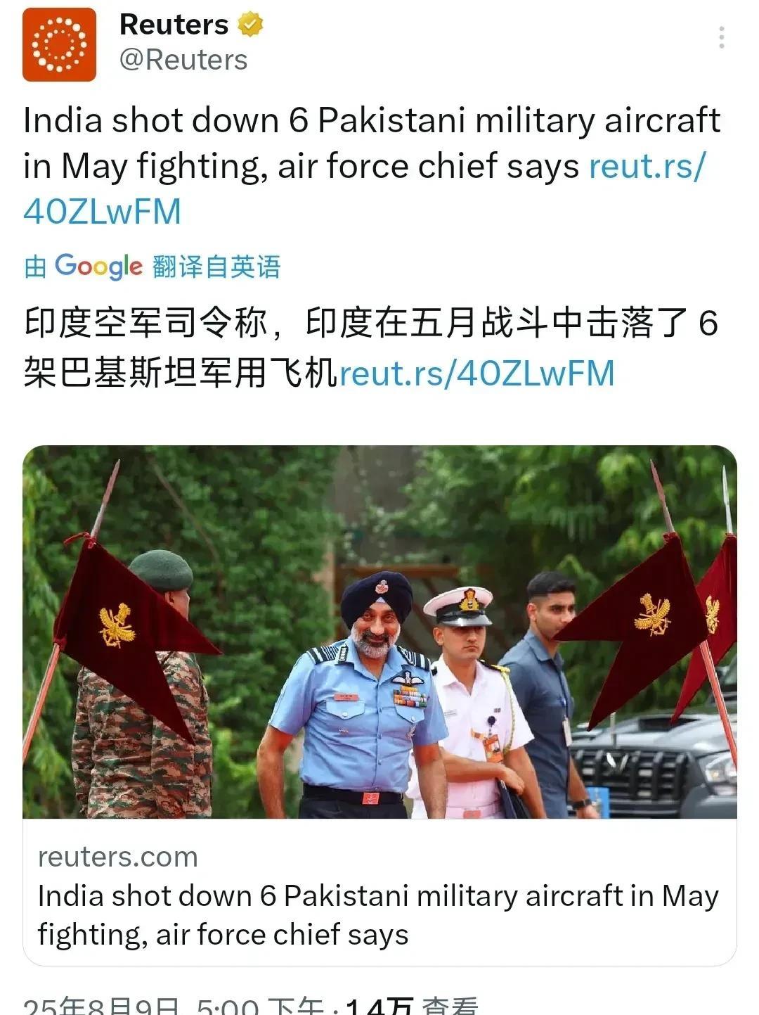 印度:我管你全世界信不信,反正我赢了。 印度空军司令称,印巴空战,印度击落五架巴基斯坦战斗机,一架预警机,这些战绩归功于俄制S400防空导弹,在300公里以外击落的巴基斯坦战机。 印度这是战略忍耐吗?当时不吭声,是担心引起战争的升级吗?在空战三个月以后爆出战绩,这不符合印度性格啊! 面对美国的制裁,印度这是在反抗吗? 印度又一次赢麻了!