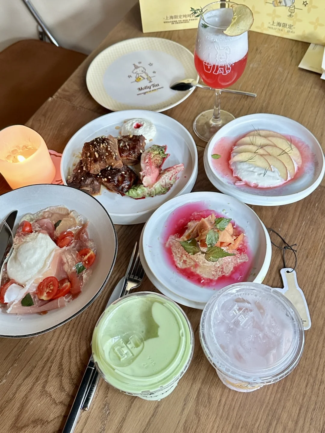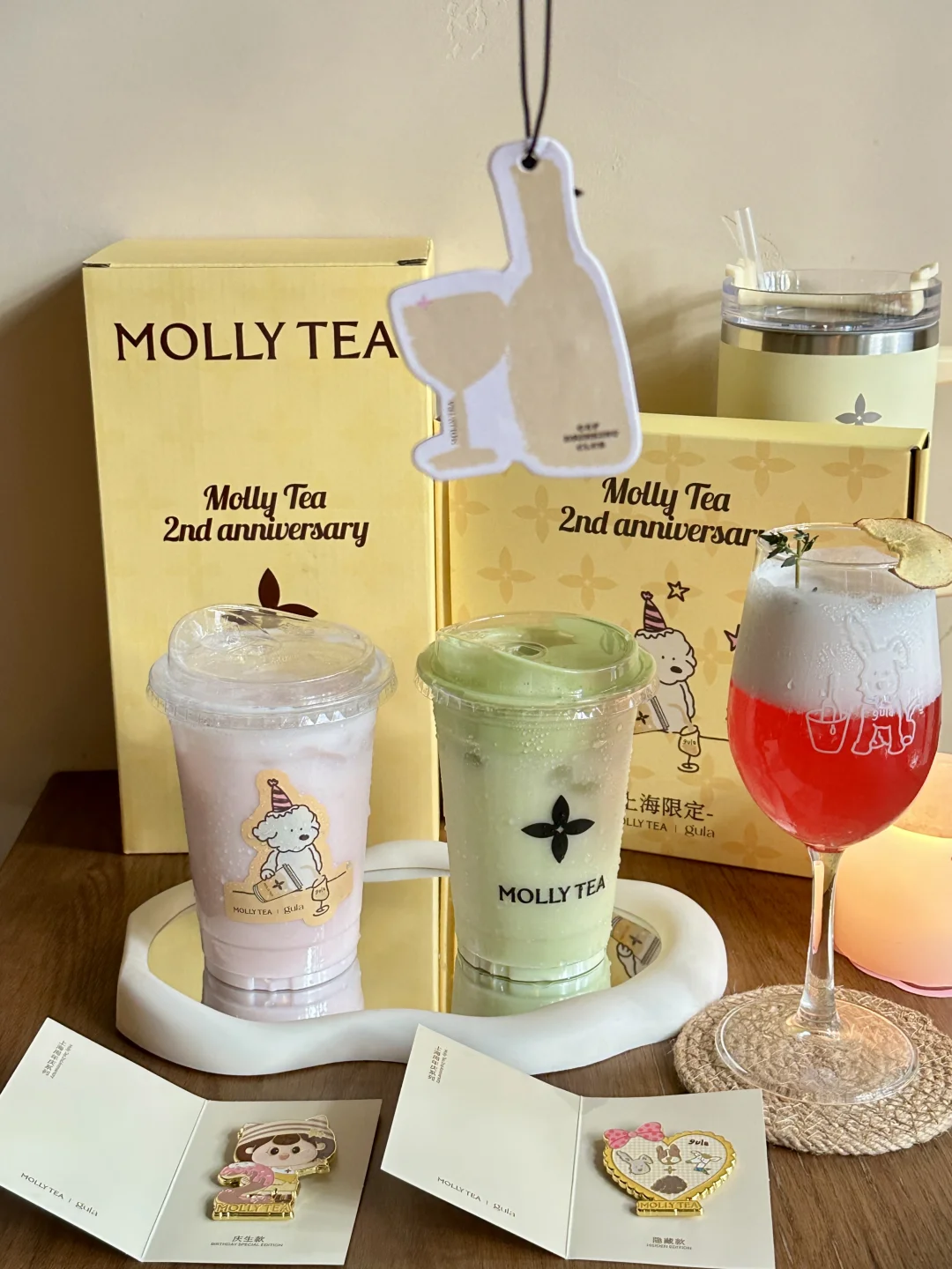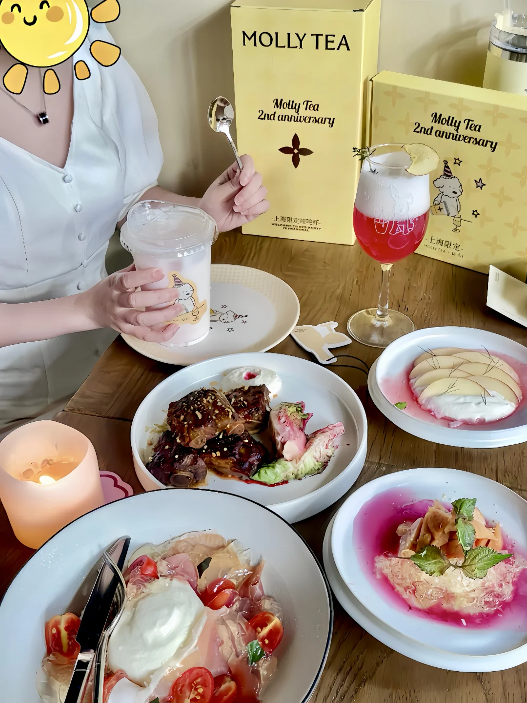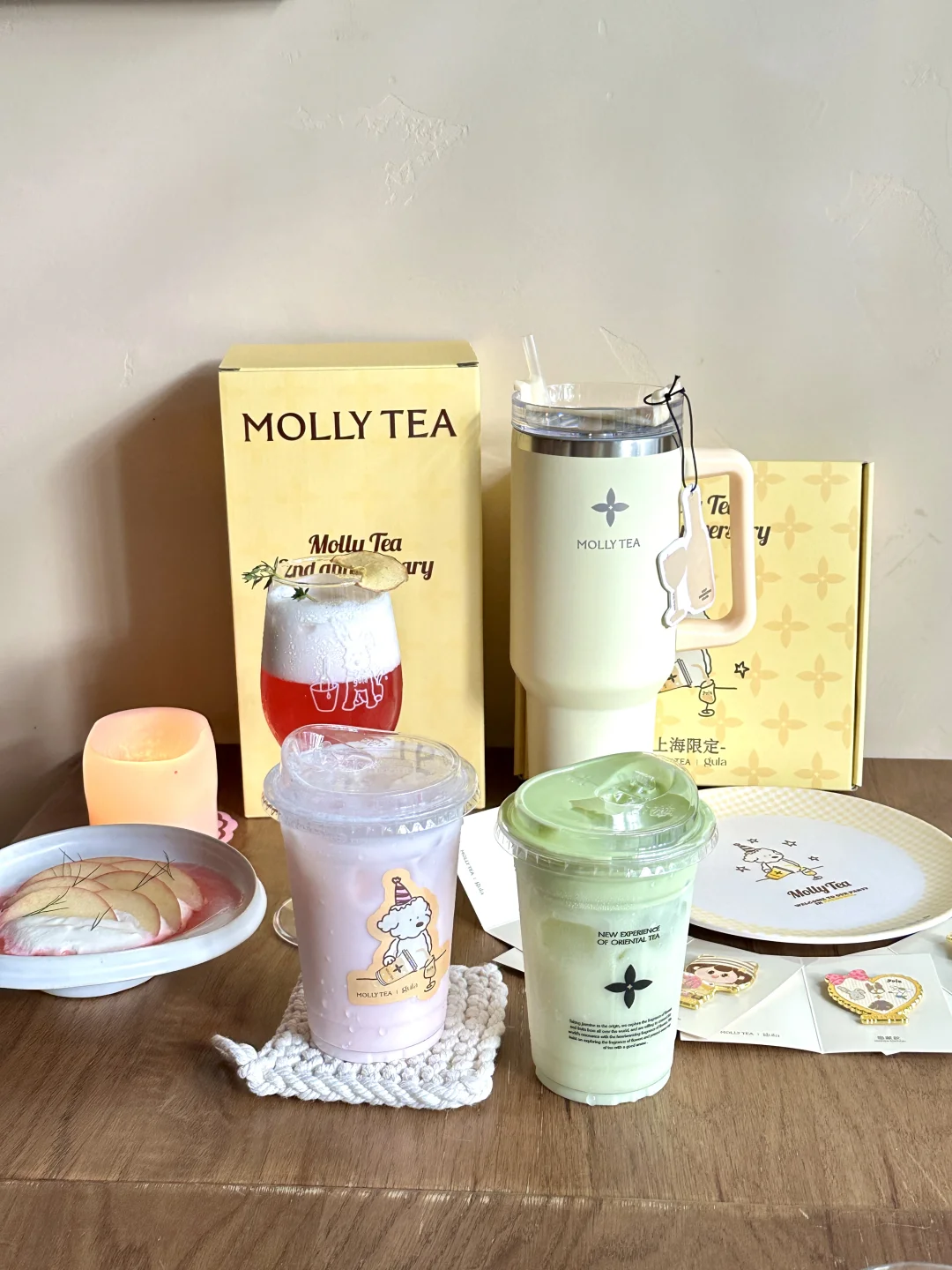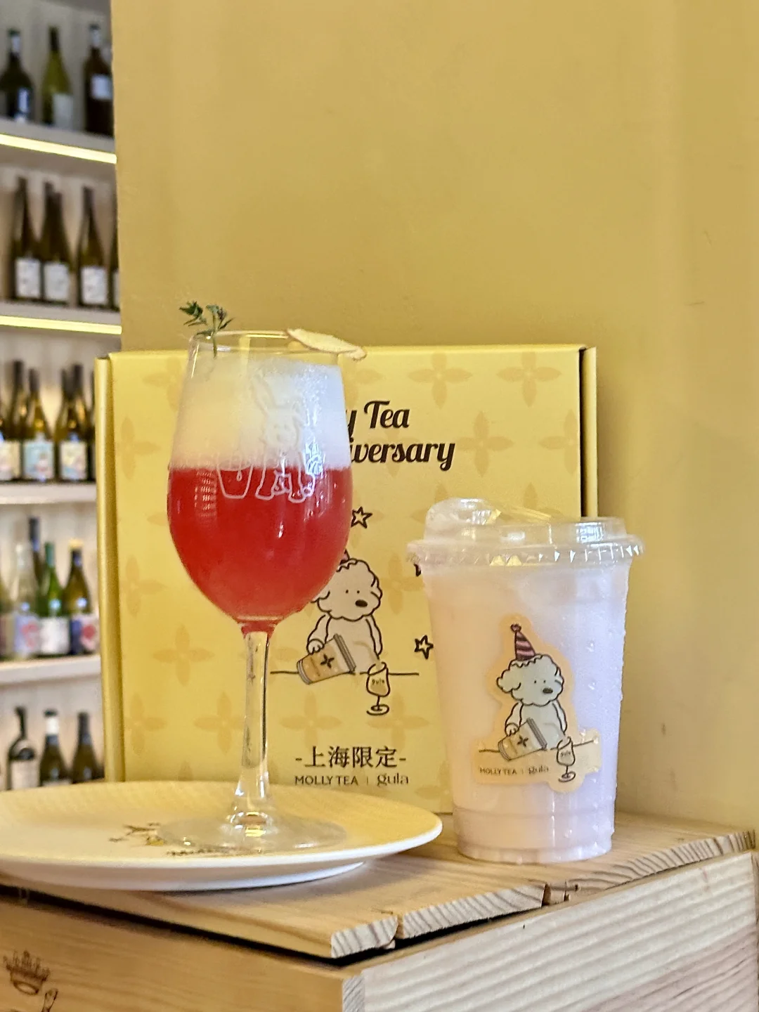 🌈茉莉奶白上海这次和gula合作直接上大分!!洒杯香卡、超可爱的冰箱贴、实用又好看的gula合作餐盘,还有限定款吨吨杯,颜值拉满了!每次出的限定周边都是一次比一次好看!!这次的周年庆周边尊滴可爱爆啦!! 🍹针王百利甜🍎(含酒精)对于我又菜又爱喝的人来说,这一杯可谓是惊为天人!!酒香和奶香融合的恰到好处,不得不说,这正是打工人该有的奶茶啊!快叫上你的闺蜜和你一起来“gap drink”一杯!!
