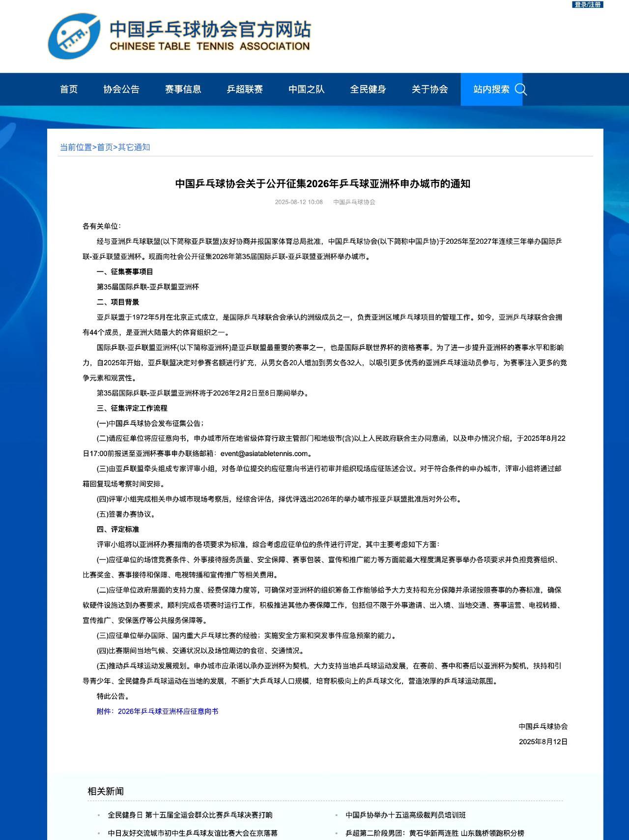 今天,中国乒协公开征集2026年亚洲杯申办城市! 球迷激动了!纷纷喊话自己所在城