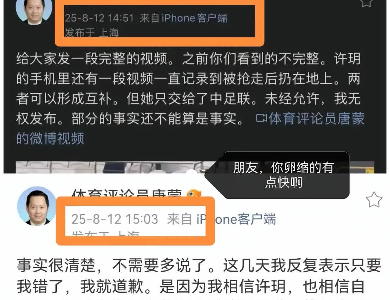 唐和许的立场也能理解,背后资本方的关系,所以国资委的企业来经营市场化的俱乐部,加上国有媒体平台,之间错综复杂的关系,能不乱吗?其实各有立场也没太大关系,就是吃相太难看了!关键还是俱乐部不赚钱,体制问题,引发了后续这些事。