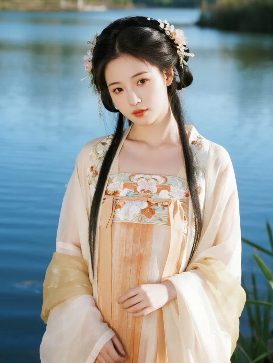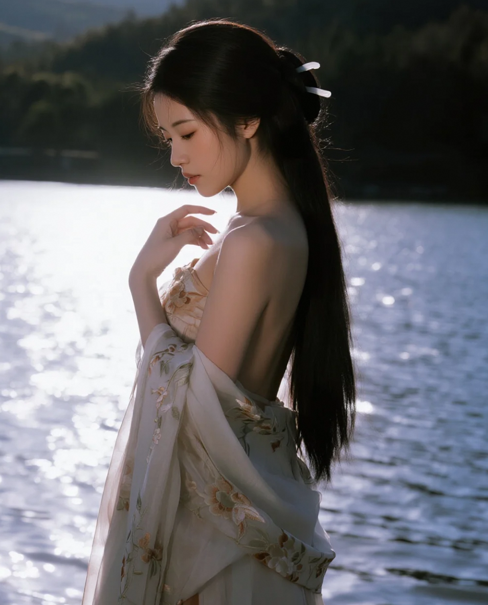 波光粼粼闪烁,映照她内心澄澈的喜悦