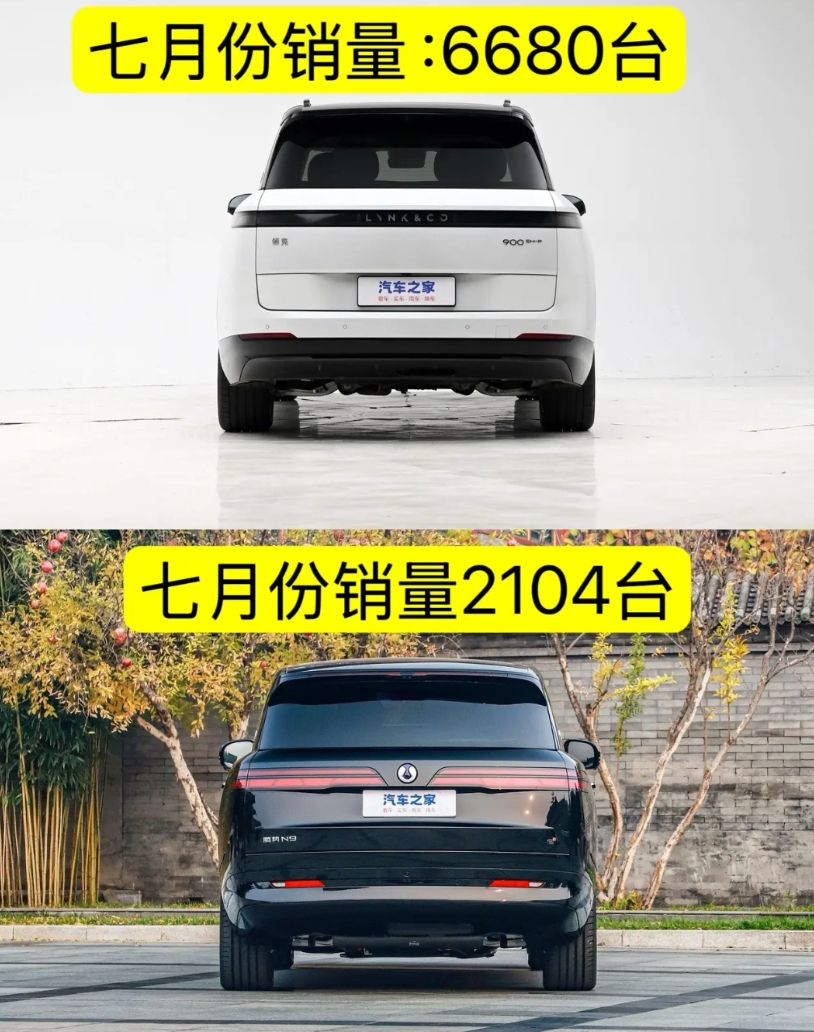 7月份腾势N9销量为2104台,而同样作为吉利旗下高端品牌的领克900的销量则为6680台,是N9的3倍还多;