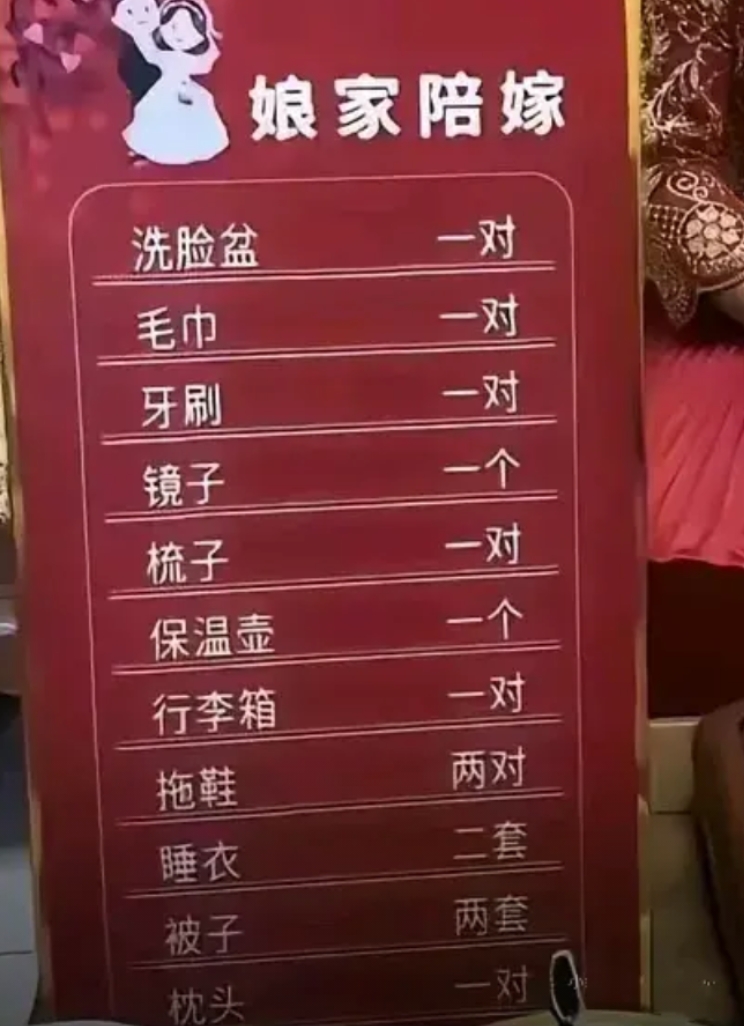 今天去参加亲戚女儿的婚礼,看到这个嫁妆牌子,真是无语了
