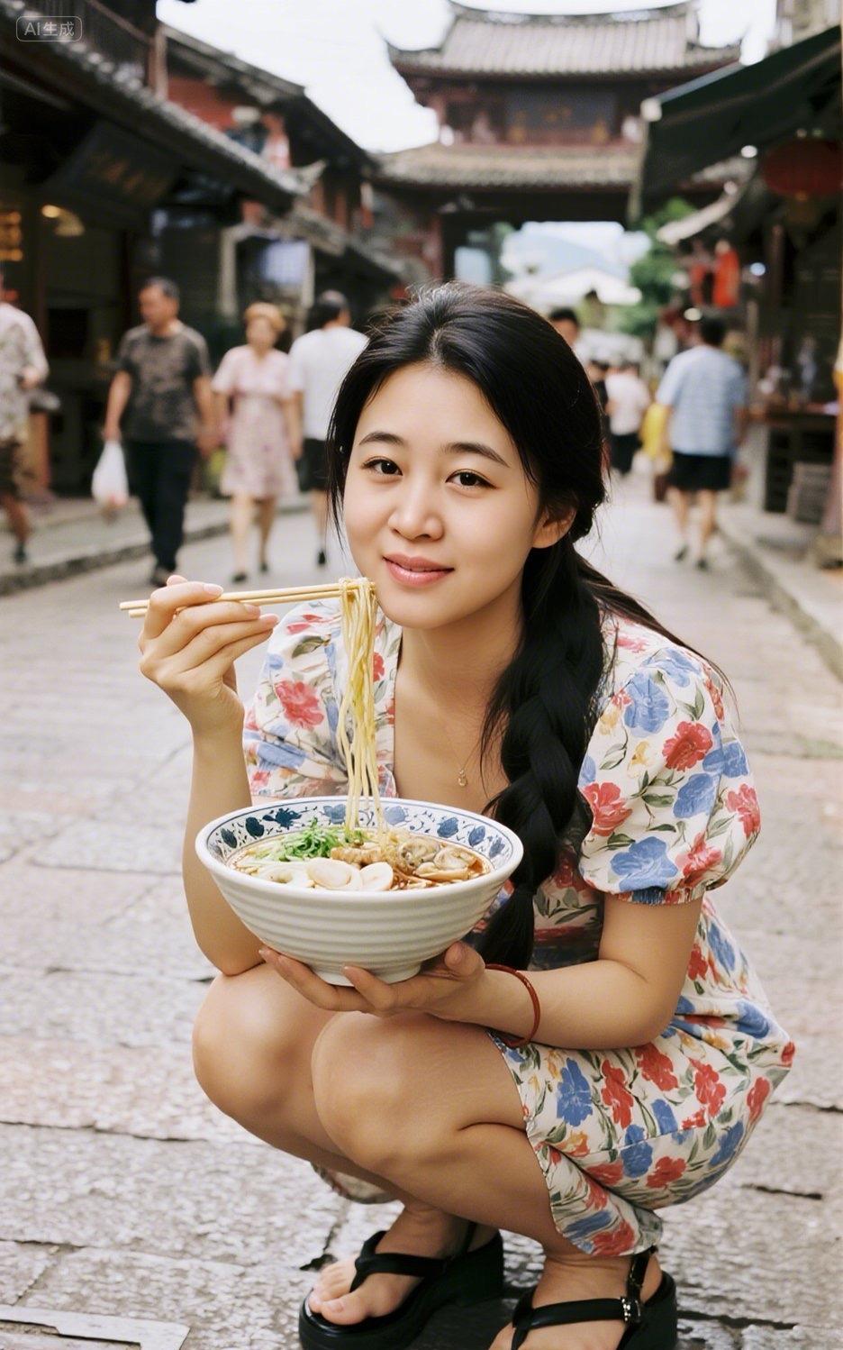 大海碗 三秦大地风色鲜,老陕爱面情万千。 街头巷尾人围坐,个个手把海碗端。 宽汤细缕香盈鼻,辣子葱花色欲燃 。 莫问此间何快意,一碗盛来岁月甜。