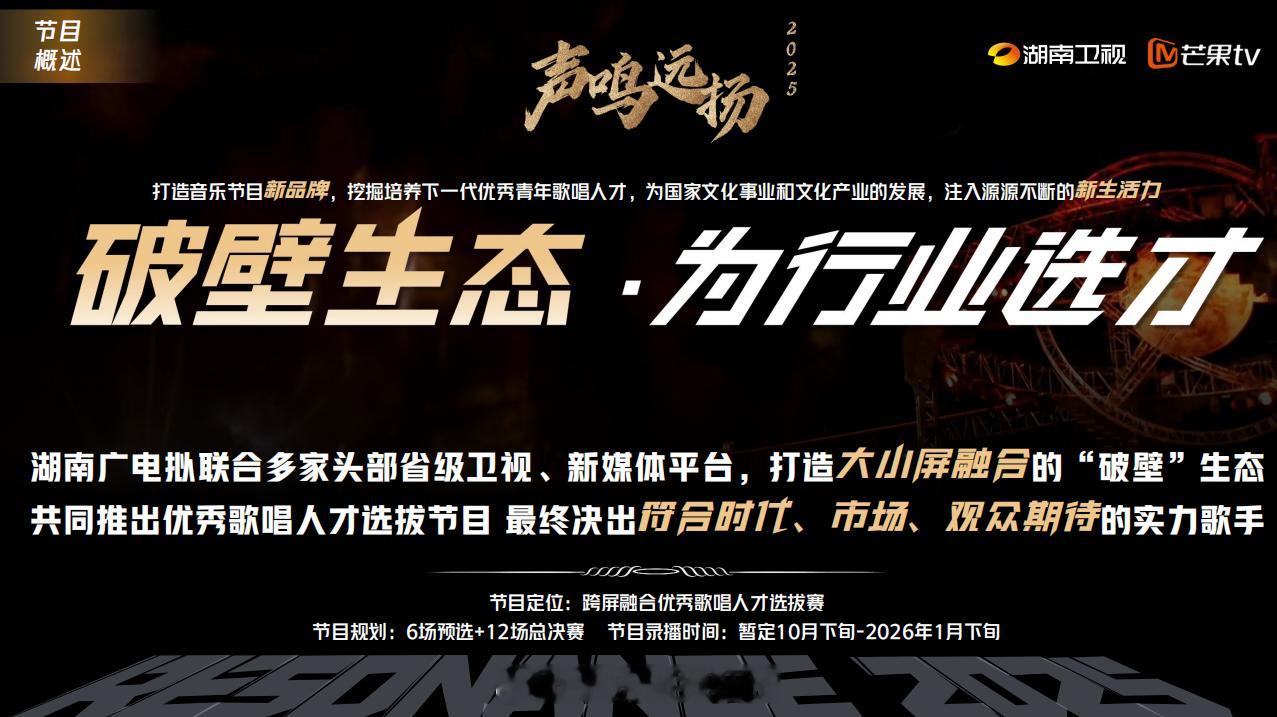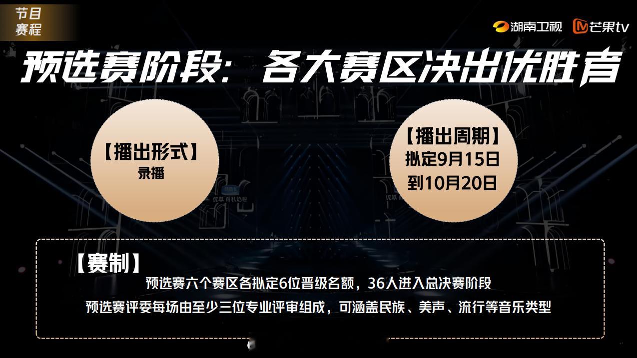 赛段分成海选、预选赛(9月15日-10月20日播出)、总决赛(11月9日到26年1月25日每周日黄金档直播)