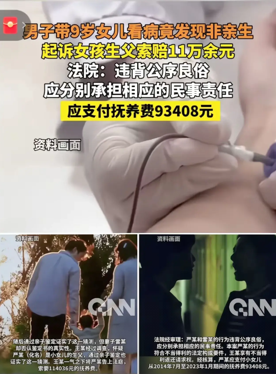 男人没被击垮。忍着剜心之痛,他抽丝剥茧,硬是揪出了女儿真正的生父。法庭之上,他掷地有声地索赔11万,每一分都是对九年欺瞒、九年错负父爱的控诉。法院最终支持了这份公道,判决生父赔偿9.3万元。这笔钱,既包含实际付出的抚养成本,更是法律对无辜者精神重创的抚慰。