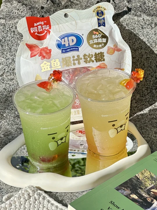 🌈这两杯新品我愿称之我的新妻子!重点是里面的灵魂金鱼,不愧是阿麦斯出品的,4D金鱼爆汁软糖!!