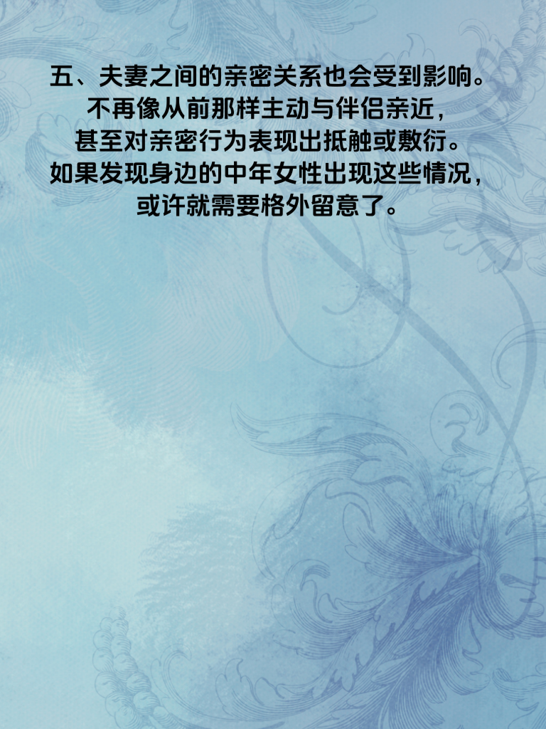 一、中年妇女若有外遇,生活往往会在诸多细节上露出马脚。首先,她们的时间分配会悄然改变。原本规律的生活节奏被打乱,开始频繁有各种外出活动,且对行踪的解释变得模糊不清。 二、在情绪方面,也会出现明显波动。时而莫名兴奋,时而又陷入沉思。对伴侣的态度不再像以往那般温和耐心,甚至可能变得挑剔易怒。 三、消费习惯也会有所不同。会突然购买一些风格迥异的新衣物、化妆品等,这些消费并非基于实际需求,而是为了在新的关系中展现自己。 四、社交圈子也会发生变化。开始与一些新结识的人频繁互动,手机不离手,信息回复迅速,聊天记录也变得小心翼翼,生怕被伴侣发现。 五、夫妻之间的亲密关系也会受到影响。不再像从前那样主动与伴侣亲近,甚至对亲密行为表现出抵触或敷衍。如果发现身边的中年女性出现这些情况,或许就需要格外留意了。
