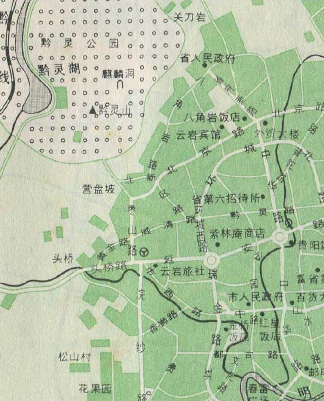 1991年的贵阳老地图,看和今日比变化多。1991 年的贵阳市区处于改革开放深入推进、城市发展转型的重要阶段,兼具省会城市的政治文化功能和山地城市的独特风貌。当时的贵阳市区范围主要涵盖云岩区、南明区两大核心城区,尚未包括后来并入的清镇市及开阳、修文、息烽等县(1996 年调整行政区划)。受限于山地地形,城市沿河谷和山间盆地紧凑布局,形成 “两山夹一谷” 的狭长形态(黔灵山、观风山环绕,南明河穿城而过)。建成区面积相对较小,主要集中在中华路、延安路沿线及喷水池、大十字等传统商业中心,向外逐渐过渡到城郊结合部的