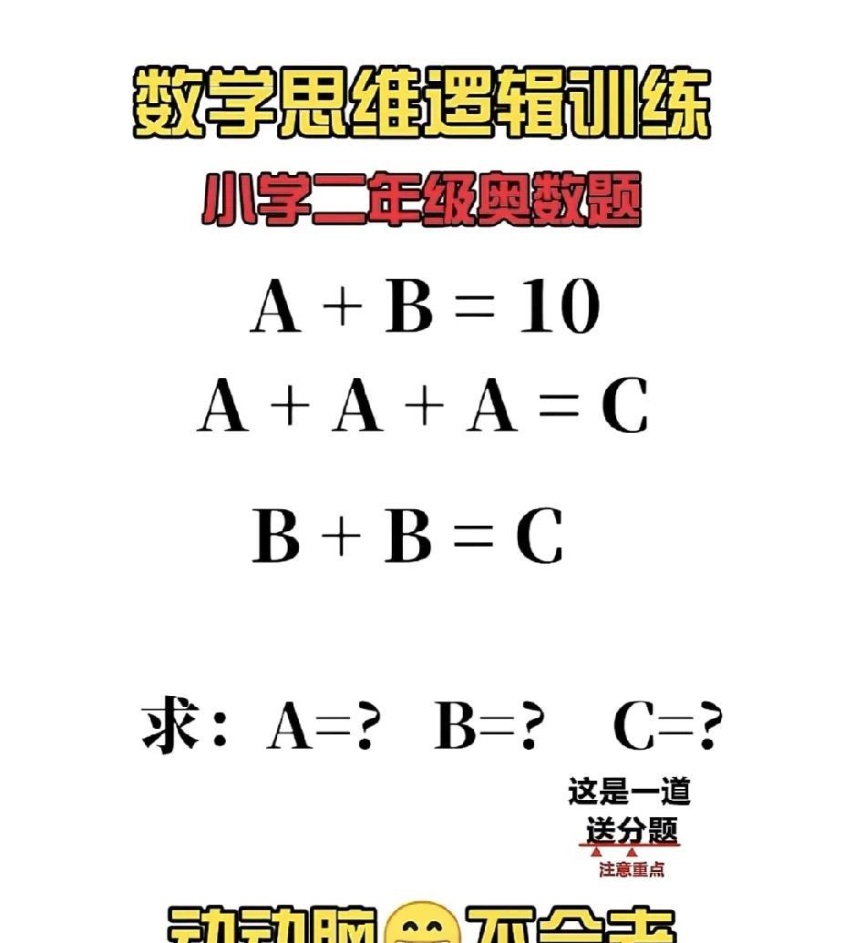 二年级奥数送分题?A+B=10 这题,家长敢说秒会不?