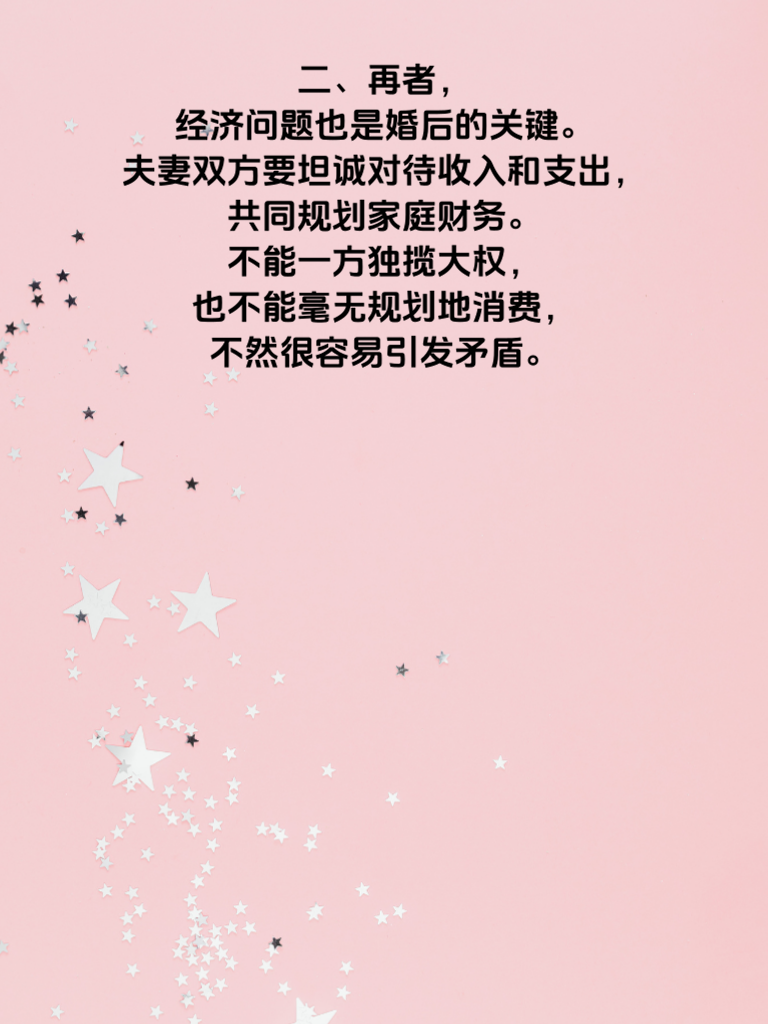 一、婚后,许多夫妻会踏入一些雷区,一不小心就会影响婚姻的幸福度。第一个雷区就是忽视沟通。婚后生活琐事繁多,可千万别因此忽略了和伴侣的交流。每天哪怕抽出一点时间,聊聊彼此的工作、生活感受,都能增进感情。 二、再者,经济问题也是婚后的关键。夫妻双方要坦诚对待收入和支出,共同规划家庭财务。不能一方独揽大权,也不能毫无规划地消费,不然很容易引发矛盾。 三、还有,不要停止对彼此的关心和爱意表达。婚后不能觉得一切都理所当然,偶尔的小惊喜、小浪漫能让感情持续升温。避开这婚后的三大雷区,用心经营,才能让婚姻长久幸福。