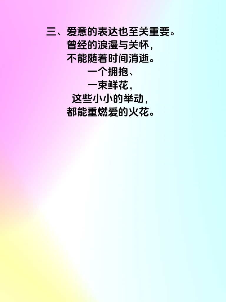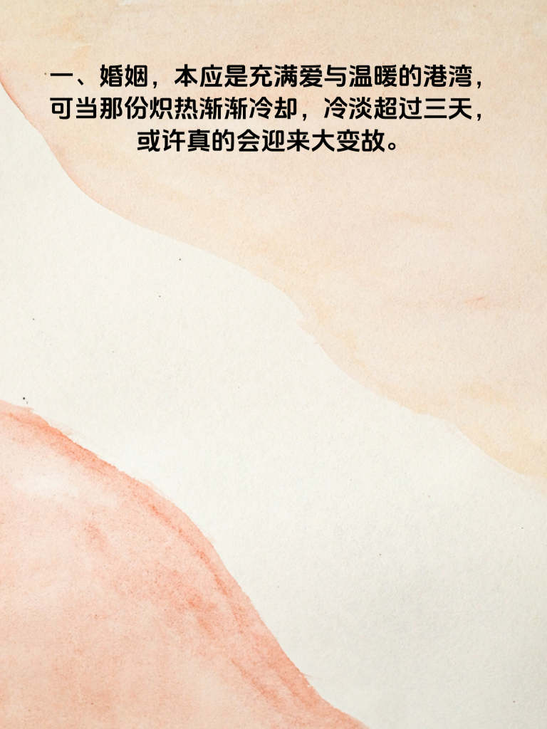 一、婚姻,本应是充满爱与温暖的港湾,可当那份炽热渐渐冷却,冷淡超过三天,或许真的会迎来大变故。 二、婚姻冷淡的开始,往往是沟通的减少。曾经无话不谈,如今却相对无言。夫妻之间,一定要保持坦诚的交流,分享日常的喜怒哀乐,别让沉默横亘在两人之间。 三、爱意的表达也至关重要。曾经的浪漫与关怀,不能随着时间消逝。一个拥抱、一束鲜花,这些小小的举动,都能重燃爱的火花。 四、共同的兴趣和目标是维系婚姻的纽带。一起规划未来,一起参与有趣的活动,让生活充满共同的回忆,而不是各自为政。 五、当婚姻出现冷淡迹象,千万别忽视。及时调整,用心经营,才能避免那可能到来的大变故,让婚姻重新回到幸福的轨道。