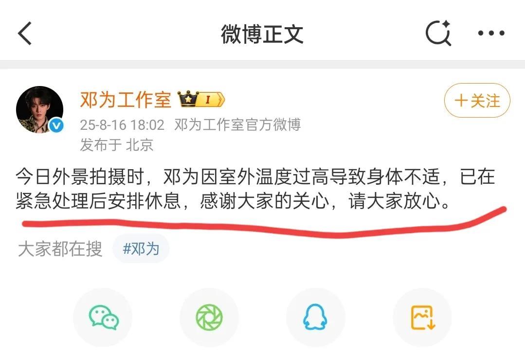 大写的心疼!邓为横店拍戏不幸中暑! 粉丝们纷纷质疑剧组, 防暑措施不到位,对邓为