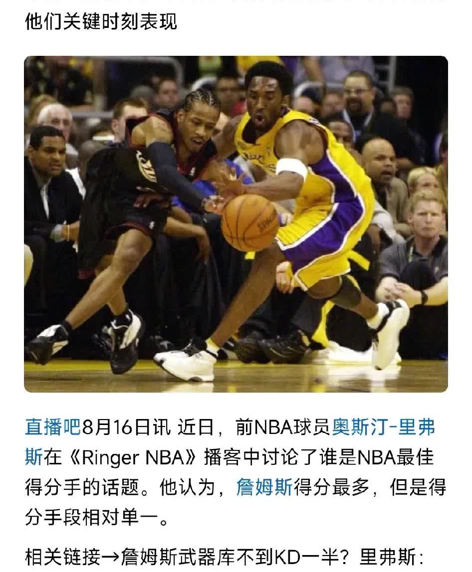 的确,以前看艾弗森,麦迪,科比打球,从来没在乎过他们的命中率,只会看他得了多少分! 不知道从什么时候起,命中率,正负值开始出现了,人们更看中这些! 那时候看球队打球,看的就是科比,看的就是艾弗森,看的就是麦迪,根本没考虑过其他的, 就想看他们的表演! 可能那个时候,还小,但是那个时候的得分表演真的振奋人心! 现在再看已经没有了那种劲儿了!