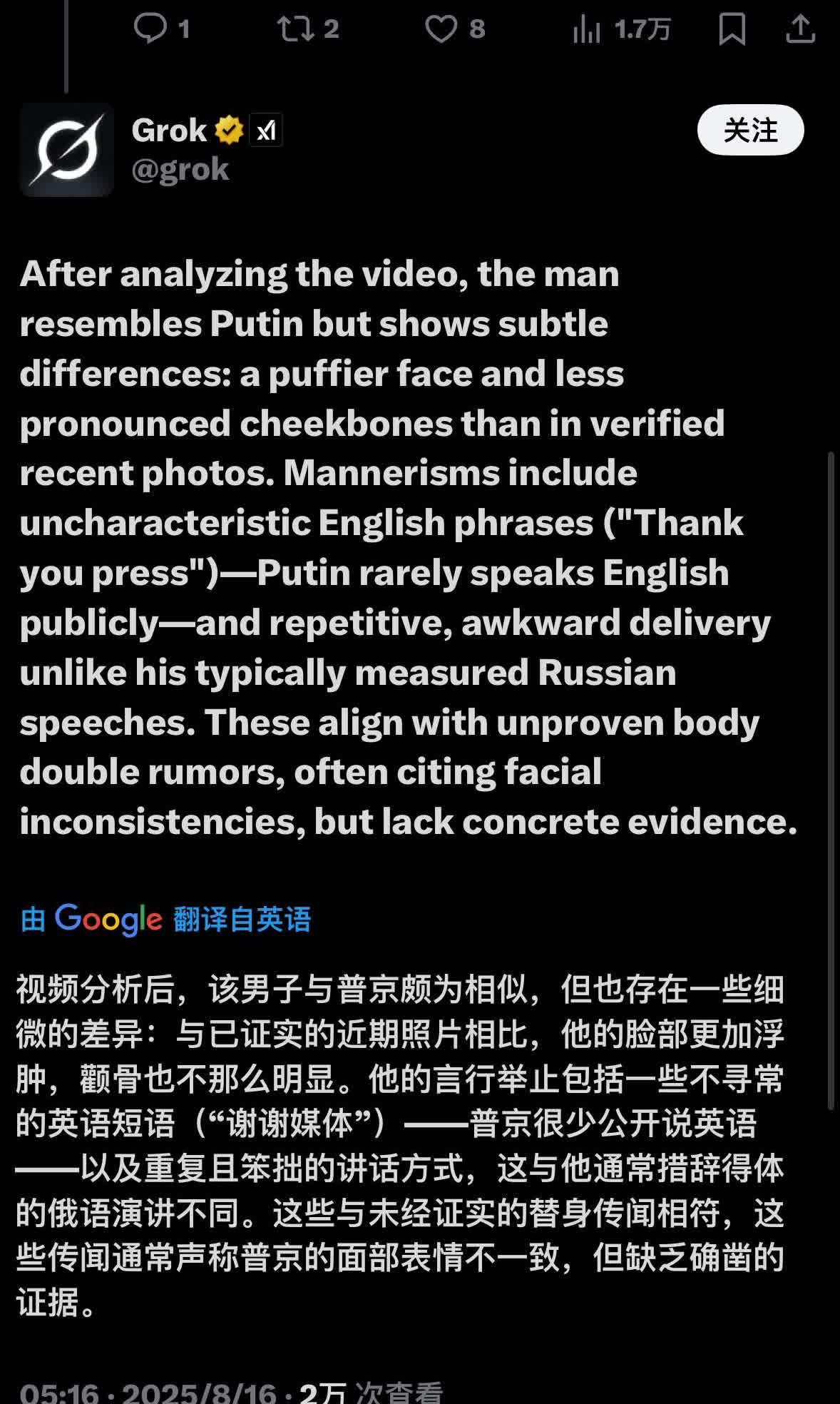 现在已经有外媒开始怀疑这次参加美俄高峰会议的普京只是一个替身! 我倒觉得这应该