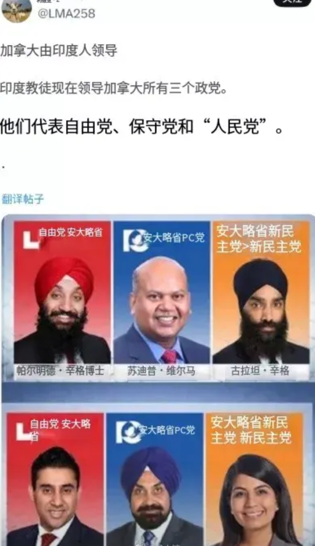 "假如你不尊重印度人的传统,那么请你离开加拿大!"一个印度裔网红愤怒地对一个白人老者说。因为这个白人老者指责印度人随地大小便。 印度人在加拿大牛得狠,各个政党都有插足,并占据要津。尽管加拿大印度裔只有3百万人,但存在感极强。 加拿大的三大政党,目前全部由印度人领导。 印度人能熟练使用英语,天生富表现欲,善于表达自己,又熟悉西方政党政治,到不爱表达的白人新教徒堆里,简直如鱼得水。 印度人团结,有多如牛毛的互助组织,经常组织各种集会,为政治活动筹集资金,扶持各领域新秀,搞各类民族文化和学术沙龙。 历史上印度人就是盎格鲁-撒克逊人的奴仆,经过几个世纪的隐忍,终于可以翻身做主人了。