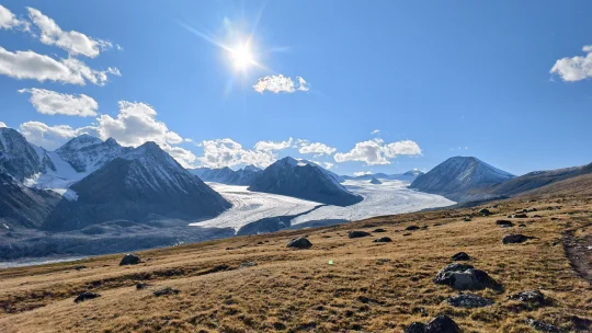 第三天因为大降温,衣服不够导致生病了…没能跟着队友去爬雪山。这两天就要不在帐篷呆着,要不在大本营旁边走走。好歹大本营就在冰川脚下。天气也很清。虽然是在蒙古国旅途中很难受的两天,也总共拍了不到20张图片,但是每一张都是大片。这地方真的不是一般的美。 蒙古国旅游攻略蒙古国骑马蒙古旅行蒙古骑马马背上旅行雪山蒙古国西部