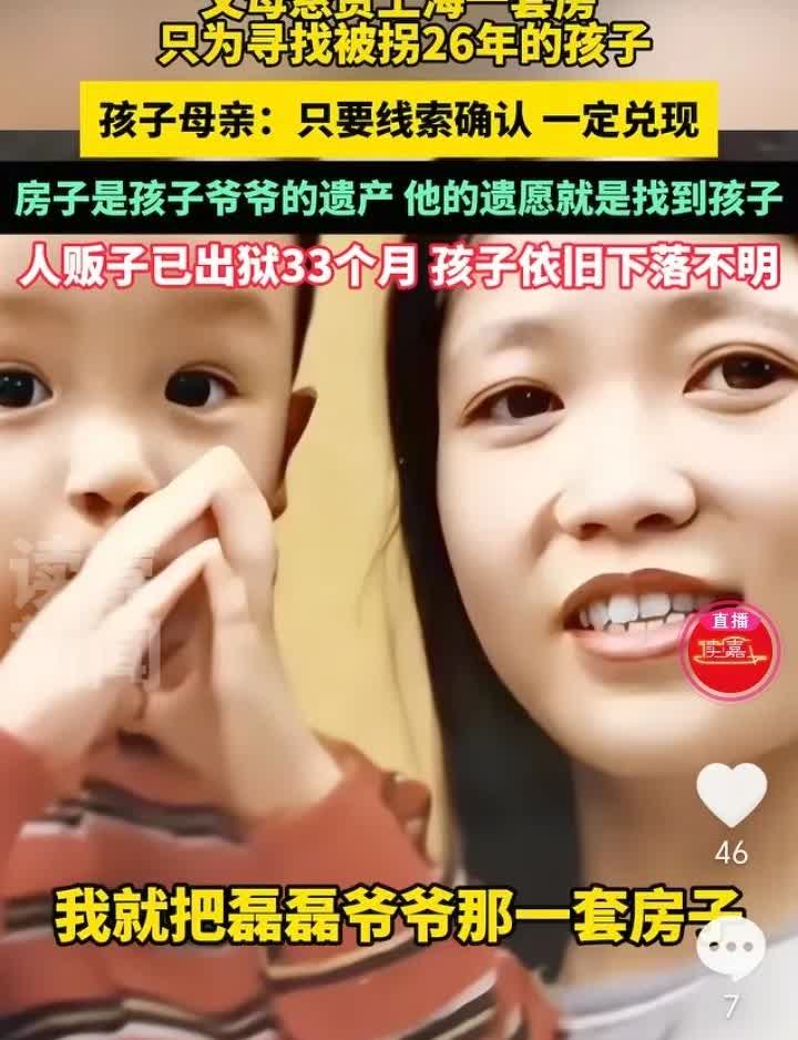 父母悬赏上海一套房,只为寻找被拐26年的孩子! 1999年8月26日,女子