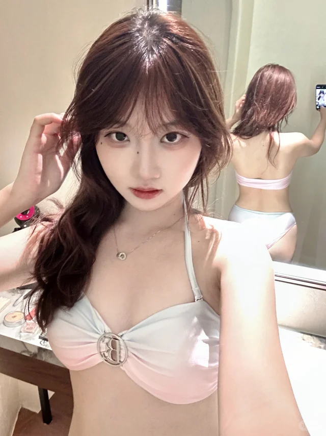 夸夸我的新泳衣真是太好看啦! 粉蓝渐变真的又温柔又显白!马上穿着去天台泳池拍照啦哈哈哈哈! 🩱:BE范德安