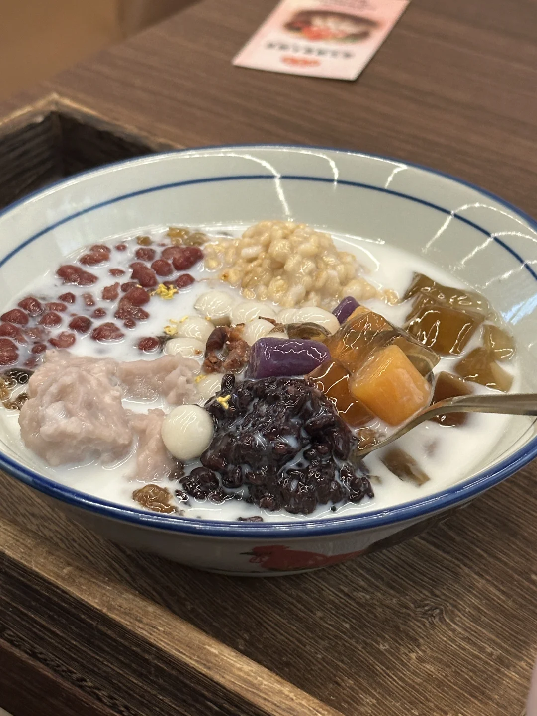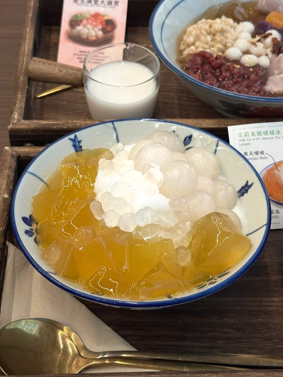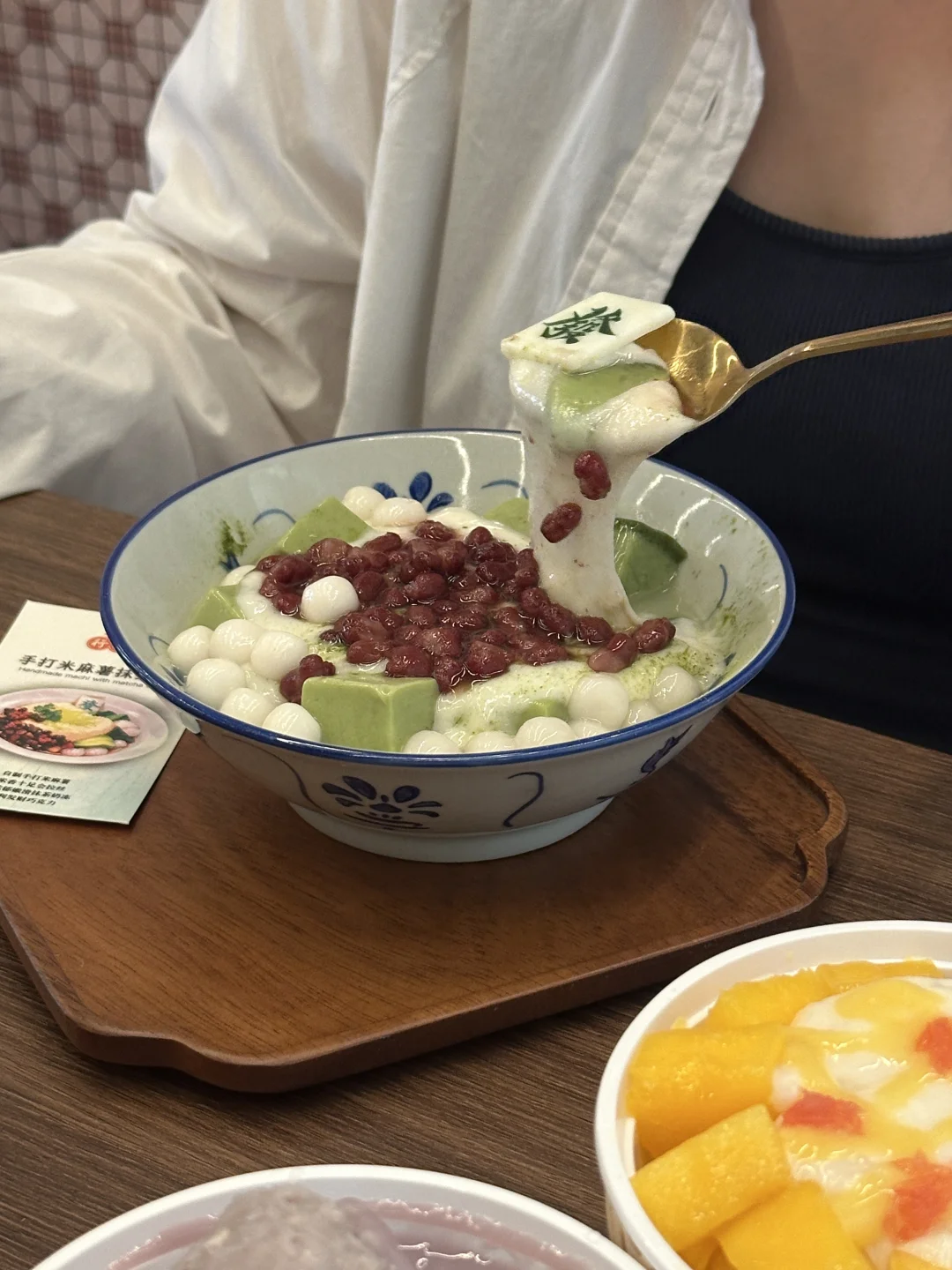 为吃到美味的龙眼冰雀跃一下 茶冻 龙眼肉 脆啵啵 绵绵冰 组成这碗小水晶 吃不腻的大满贯 很清甜 特别是QQ手工芋圆和糯紫米球 手打米麻薯抹茶 双糯组合奶香的麻薯和丸子 糖水真是神奇 食材放一起会变得很好吃 吃完这顿甜水出门 夏末放晴了