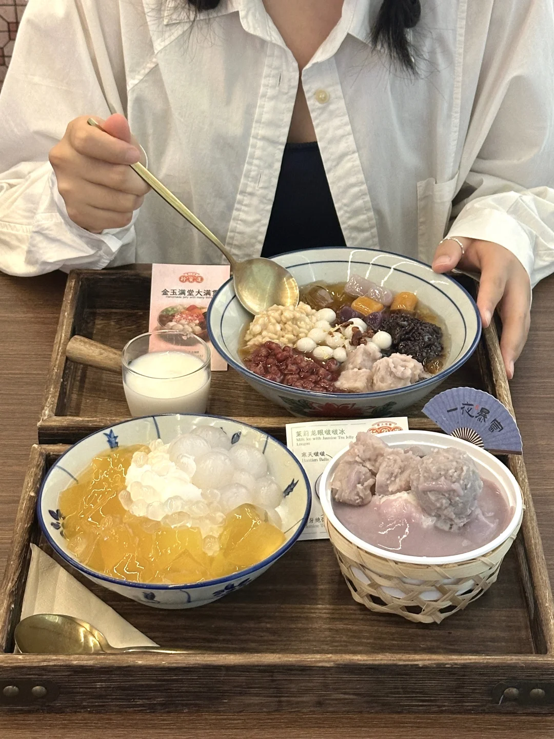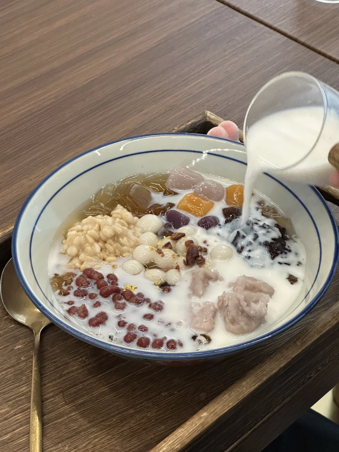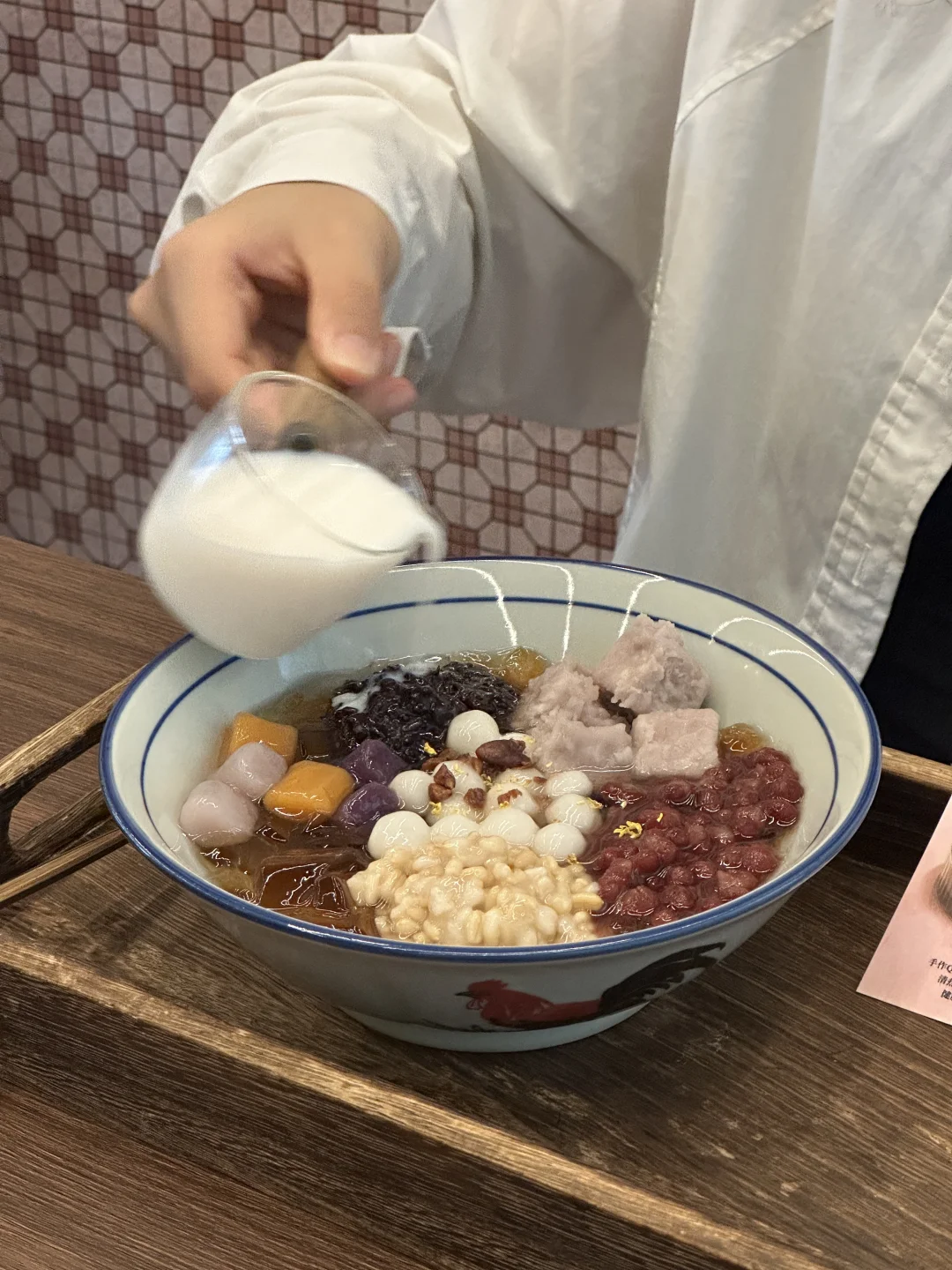 为吃到美味的龙眼冰雀跃一下 茶冻 龙眼肉 脆啵啵 绵绵冰 组成这碗小水晶 吃不腻的大满贯 很清甜 特别是QQ手工芋圆和糯紫米球 手打米麻薯抹茶 双糯组合奶香的麻薯和丸子 糖水真是神奇 食材放一起会变得很好吃 吃完这顿甜水出门 夏末放晴了