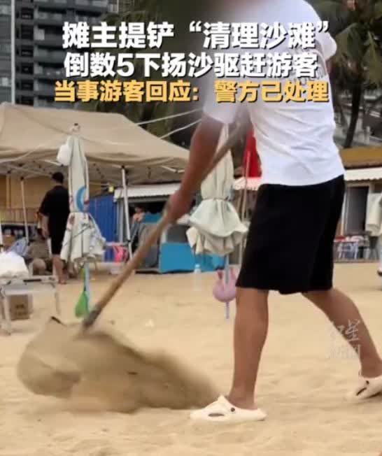 “惠州文旅一觉醒来,天都塌了!”女游客跟家人在公共沙滩休息,一名陌生男子手拿铁锹,气势汹汹地声称沙滩是他承包的,在倒数5个数后,竟直接朝游客身上扬沙子,还扬言道:不要拍视频了,你拍了也没用! 国庆节放假那会儿,广东惠州的一个公共沙滩上,张秋英(咱们就叫她小张吧)一家子正开心地玩着呢,晒太阳、孩子跑来跑去,别提多乐呵了。结果,半路杀出个程咬金,一男的拿着铁锹过来说这片沙滩他包了,让他们赶紧走人。小张一家都懵了,这明明是大伙都能来的公共沙滩啊,咋就成了他的地儿了? 小张想跟他讲讲理,可这哥们儿根本不听,还开始数数,说数到五不走就动手。他面对着镜头,一脸不在乎地说:“别拍了,拍了白拍。”结果数完五,他真的铲起沙子就往他们身上扬。这事儿被拍下来传到网上,大家都惊呆了,气的不行。有网友开玩笑说:“这可不是扬沙子,是把惠州的旅游形象都给扬没了。”还有人不明白,公共的地方咋就能变成私人的? 这事儿闹大了,惠州那边赶紧管,让那男的停业七天,好好反省。本来好好的一个假期,结果给惠州的旅游形象来了一记狠的。