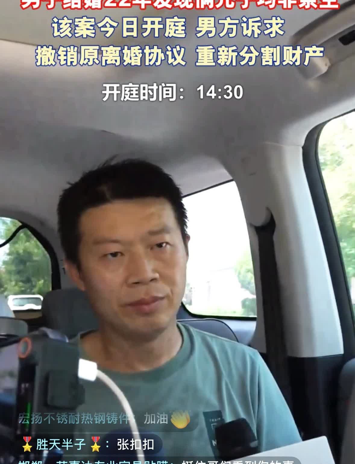 离了个大谱! 直播中的男子表示很绝望! 和妻子结婚22年,发现俩孩子均非亲生,一个是隔壁村支书的,一个是堂哥的! 妻子算个狠人,如果没被发现,打算这辈子瞒到底!男子离婚时几乎净身出户,到最后都还在替妻子和孩子考虑,如今看来是个笑话,替别人养孩子多年,到头来一无所有! 人善被人欺,今日将重新开庭,对财产进行重新分割,大家觉得他能成功夺回属于自己的财产吗?