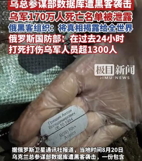太可怕了!被乌克兰实际战争伤亡数据惊到了,乌克兰总参谋部的核心数据遭泄密,乌军开战以来阵亡总数字竟然超过170万人! 乌克兰战争的消息,看完真的后背一凉,太可怕了,谁能想到乌克兰的实际战争伤亡数据会这么惊人。 这还不算完,俄罗斯国防部紧跟着又放了消息,说就在过去24小时里,打死打伤的乌军人员就超过 1300 人,这两个数字一出来,不光国际社会炸了锅,连不少关注俄乌冲突的人都被惊到了。 之前大家虽然知道战争打得惨烈,可没想到伤亡会这么大,这哪里是打仗,简直是在“填人命”。 先说说这 170 万阵亡人数有多离谱,要知道,乌克兰刨去老弱妇孺和逃离国外的难民,能打仗的壮丁撑死了也就几百万人。 现在光阵亡就超过 170 万,意味着乌克兰几乎把能动员的青壮年都快打光了,可能有人会说 “这数据会不会是假的”,毕竟战争中双方都爱夸大对手伤亡、隐瞒自己损失。 可这次是乌克兰自己的总参谋部核心数据泄密,不是俄罗斯单方面公布的,可信度比平时的宣传高多了。 而且从战场情况看,俄乌双方这两年一直在顿巴斯、扎波罗热这些地方反复拉锯,每次争夺一个小镇、一座桥梁,都得付出成百上千人的伤亡。 比如之前的巴赫穆特战役,双方打了好几个月,乌军光在那一个地方就伤亡了好几万人,现在累计到 170 万,虽然看着吓人,但也不是完全没可能。 再看俄罗斯国防部公布的,这数字也能侧面印证战争的残酷还在持续,一天 1300 人,一个月就是 3.9 万人,这么算下来,170 万的阵亡人数,其实就是这两年日积月累“堆”出来的。 俄罗斯为啥公布这种短期伤亡数据?一方面是想展示自己的战场优势,告诉外界“我们还在持续打击乌军”,另一方面也是想给乌克兰施压。 可乌克兰这边也硬撑着,哪怕伤亡这么大,也没松口要和谈,背后其实是西方在不断给武器、给援助,让乌克兰觉得“还能再打打”。 但这 170 万阵亡人数,最让人揪心的不是数字本身,而是数字背后的一个个家庭,每个阵亡的士兵,可能是某个孩子的爸爸,某个老人的儿子,某个女人的丈夫。 170 万意味着 170 万个家庭失去了顶梁柱,多少孩子从此没了父亲,多少老人白发人送黑发人,多少家庭从此支离破碎。 之前有乌克兰媒体报道过,不少前线士兵的家属,连亲人的尸体都找不到,只能拿着一张照片在家里祭拜,还有的家庭,兄弟俩、父子俩都上了前线,最后一个都没回来。 这种人间悲剧,比冰冷的数字更让人难受。 而且这数据泄密,对乌克兰来说也是个大打击,首先是士气问题,士兵们知道自己这边已经死了 170 多万人,心里肯定会发怵,下一个会不会是自己? 之前乌克兰还能靠“保卫国家”的口号动员士兵,现在这么大的伤亡摆在面前,再想让老百姓主动上战场,难了。 从俄罗斯的角度看,这数据也帮了它一把,之前西方总质疑俄罗斯公布的伤亡数据“不真实”,现在乌克兰自己的泄密数据出来,反而印证了俄罗斯之前说的“乌军伤亡惨重”不是假话。 俄罗斯还能借着这数据,向西方传递“再帮乌克兰也没用,它已经快撑不住了”的信号,让西方动摇对乌克兰的支持。 就说上世纪 80 年代的两伊战争,当时伊拉克和伊朗双方都一直隐瞒自己的伤亡数据,对外只说 “取得了重大胜利”。 直到伊拉克国防部的一份内部报告被泄密,里面显示伊拉克已经阵亡了超过 30 万人,受伤人数更是超过百万。 这数据一出来,伊拉克国内瞬间炸了锅,老百姓上街抗议,要求停止战争,伊朗也借着这数据,加大了对伊拉克的进攻力度。 最后伊拉克实在撑不住了,只能找沙特等国借钱继续打仗,可也为后来的海湾战争埋下了隐患,因为借钱太多,伊拉克经济崩溃,最后只能靠入侵科威特来转嫁危机。 乌克兰现在面临的情况更糟,因为它的伤亡数据比两伊战争、南斯拉夫内战中的任何一方都要大,而且它还得依赖西方援助才能继续打下去。 要是西方因为这数据减少援助,乌克兰很可能会彻底撑不住。 要是西方还不停止拱火,继续给乌克兰送武器,只会让更多乌克兰人送命,让战争拖得更久。 信源:极目新闻——2025-08-21——《乌克兰总参谋部数据库遭黑客袭击,乌军170万人死亡名单被泄露,俄黑客组织...》