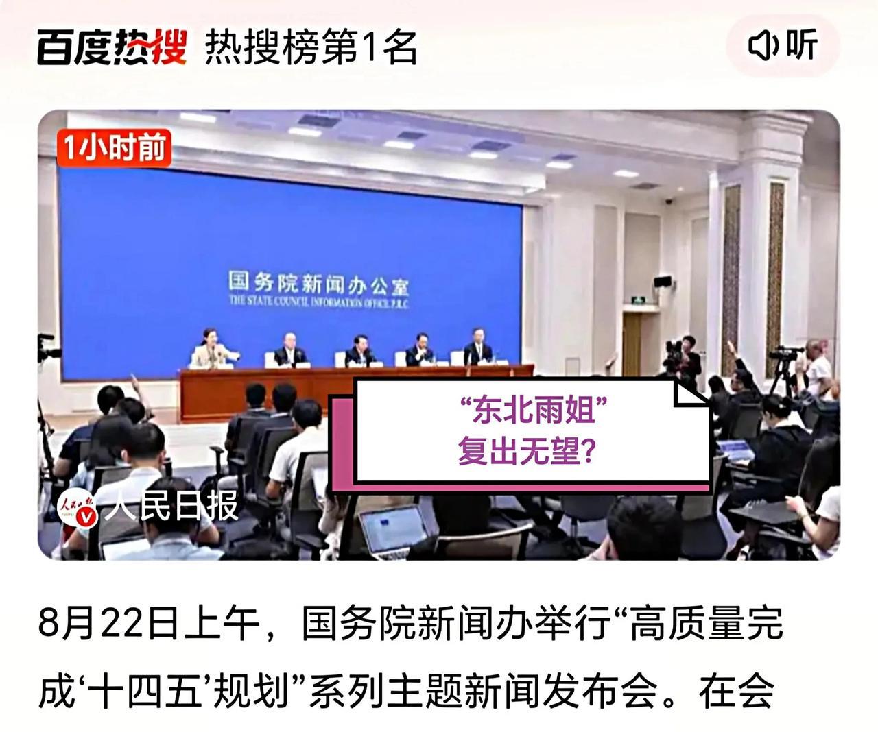 “东北雨姐”估计复出无望了! 今天国务院举行发布会,国家市监局直接点名“东北雨姐