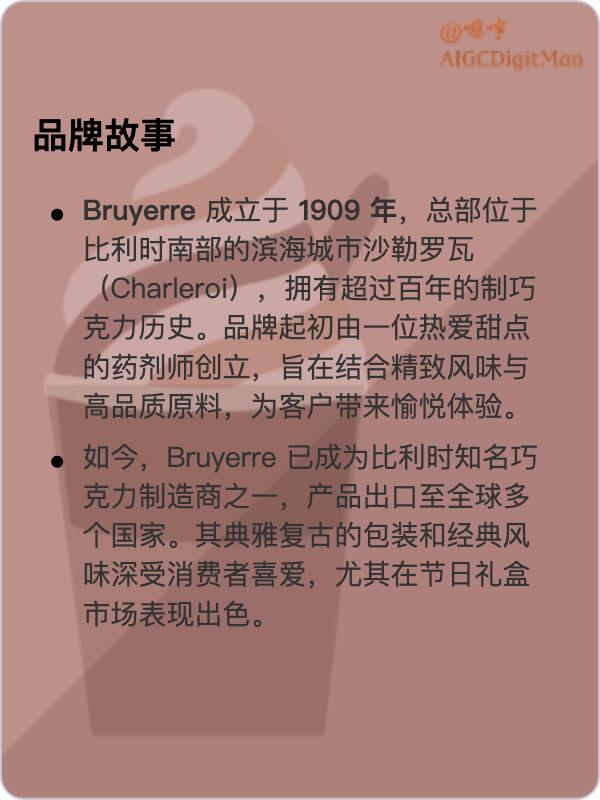 如今,Bruyerre 已成为比利时知名巧克力制造商之一,产品出口至全球多个国家。