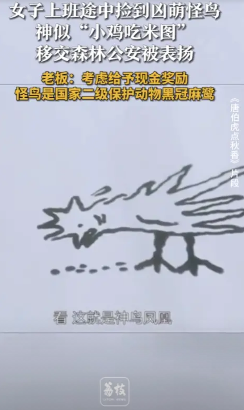后来一查才知道,这怪鸟可不是普通鸟,是国家二级保护动物,叫黑冠麻鹭,这种鸟数量不多,要是偷偷留下它,那可是要负法律责任的,女子捡到保护动物还主动上交的事儿,后来被她公司老板知道了。