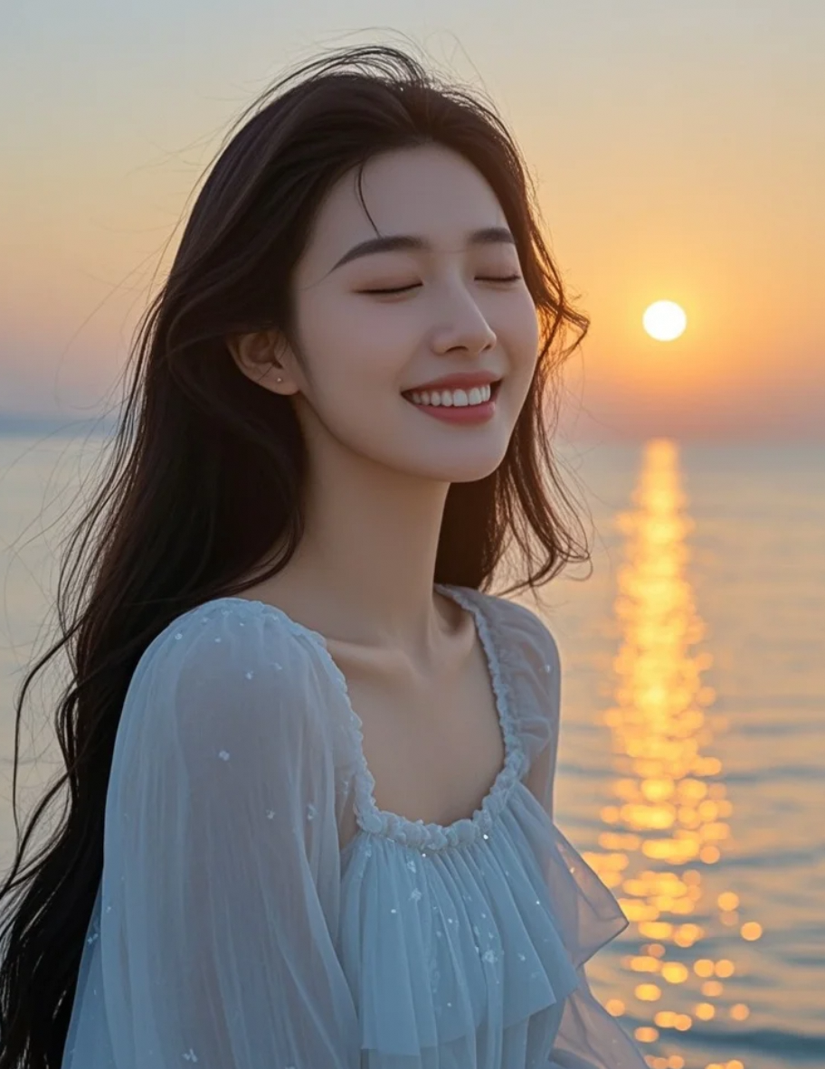 浪漫的晚风,将她的发丝吹向远方,也吹向心间