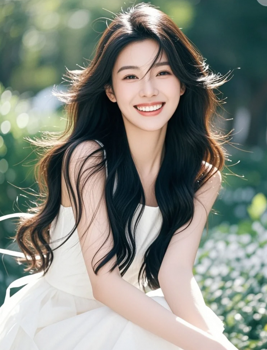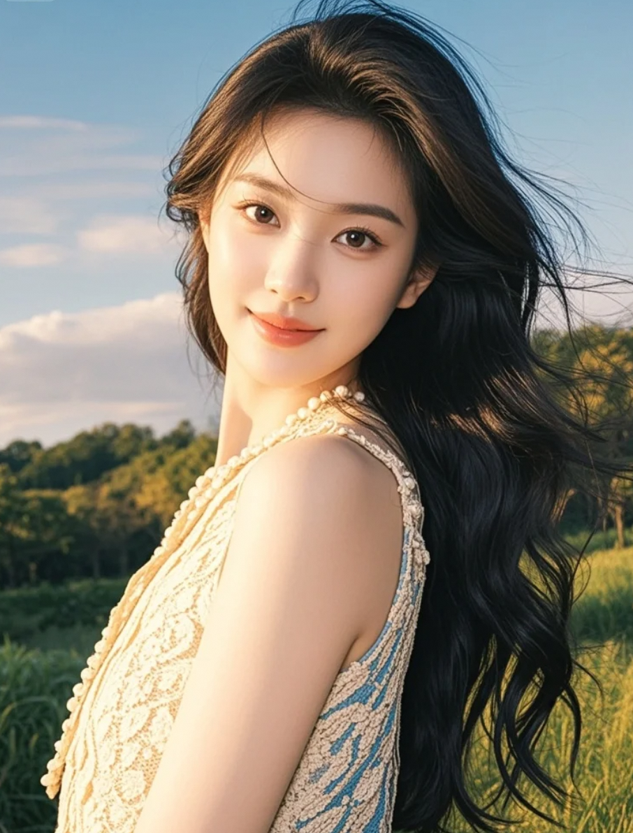 长发飘飘,眼神迷离,她沉醉在晚风的怀抱