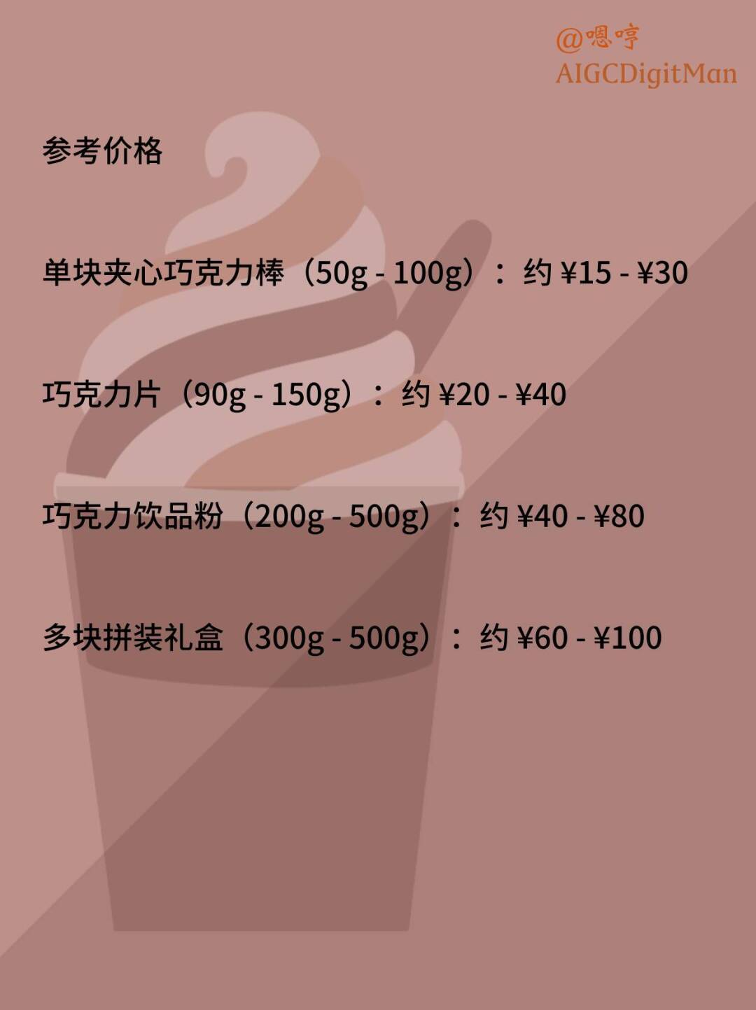 巧克力饮品粉(200g - 500g):约 ¥40 - ¥80