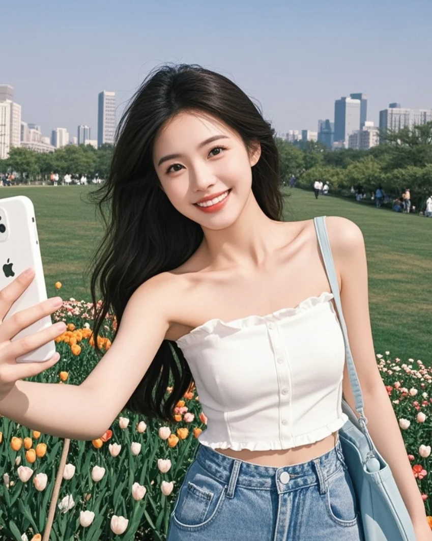 沙滩自拍ing,海风撩发,你猜浪花说了什么悄悄话?