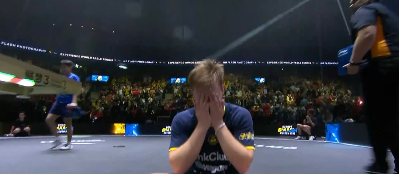 在今天进行的一场世乒联欧洲大满贯男单决赛中,发生了特别感人的一幕。当瑞典选手莫雷加德以4:3险胜中国名将林诗栋赢得冠军的那一刻,他情难自制直接泪洒当场,只见莫雷加德双手掩面流下了热泪,场面看起来非常的感人。值得一提的是,这是莫雷加德职业生涯中赢得的首座大满贯男单冠军,在如此幸福的时刻,他流下了幸福的眼泪。