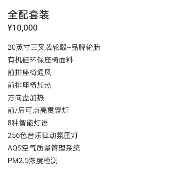C10不加5000块的选装会后悔一辈子 不管是24款还是26款的C10,都有一个选装包说是价值10000,但是有5000的优惠,实际上就是5000块钱,这个选装包一定要选装,里面的东西有:20寸的大轮毂,内饰升级成有机硅的皮质面料,方向盘加热,前排两个座椅的通风加热,前后贯穿灯带,氛围灯,PM2.5空气质量检测系统。 ❌我认为没用的配置: ①20寸的大轮毂:大轮毂除了好看,其他的我认为没啥用,舒适度不如18寸的,后期换轮胎的时候20寸的轮胎价格也很高,倒不如给我减500块钱来得划算。 ②有机硅材质的座椅:这个材料我摸起来还可以,但是我以为的有机硅是一点味道都没有,但是实际体验过程中新车还是会有比较大的味道,这个味道也好久才消散,我的驾驶位上面的座椅也有点褶皱了,所以这个有机硅我没有实际体验到多大的用处。 ③PM2.5的检测以及空气质量管理系统:这个我在广州基本上没体验到它的作用,而且说到这个我在换空调滤芯的时候发现它用的空调滤芯竟然是不带活性炭的,后面问了商家才知道,如果带滤芯,可能会影响出风效果,我不知道C16车友的压缩机问题是不是这个原因导致的,如果真是这样就有点搞笑了。 ⭕我认为比较有用的配置: ①前后的贯穿式的灯带:这个作用主要是外部的好看,我看过不带选装包的版本,尤其是晚上缺少了一种科技感,有点简陋的感觉,不亮的时候感觉那一段像是坏了。 ②氛围灯:氛围灯确实是增加了不少的气氛,这个氛围灯的颜色还是不错的,有特别可选,但是我不建议跟随音乐跳动,因为晚上的时候会晃眼,有点不舒服。