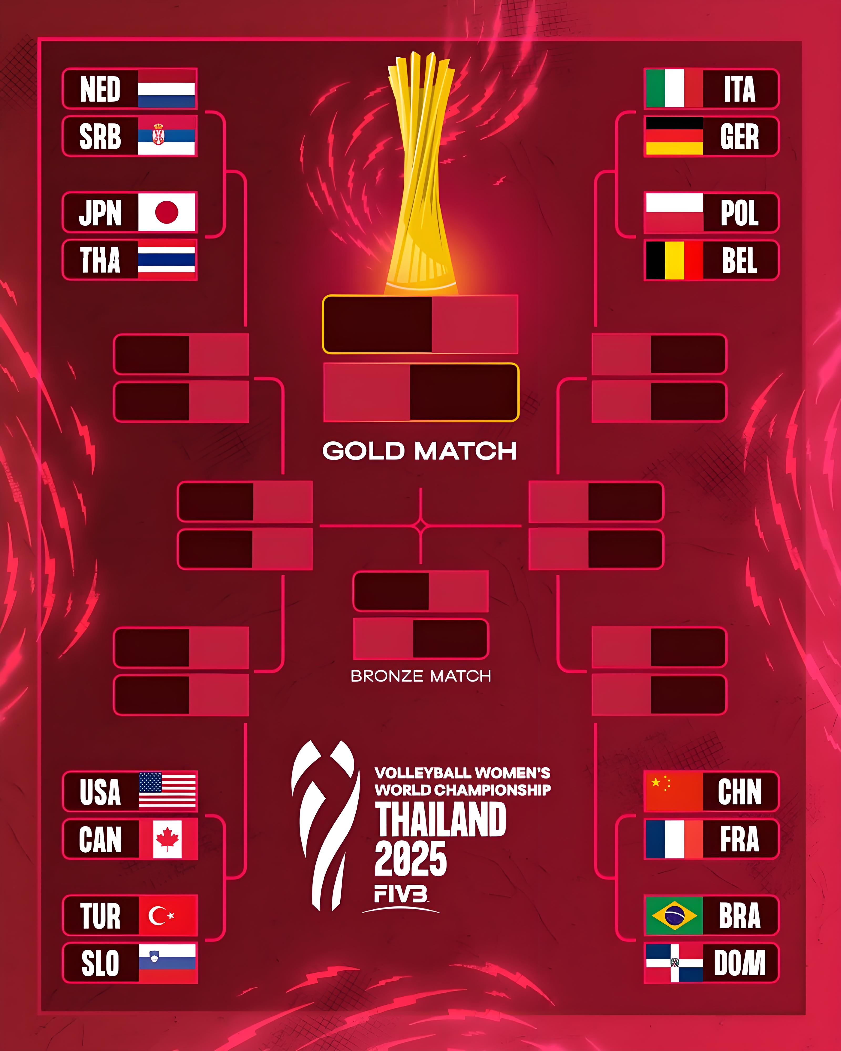 【女排世锦赛1/8决赛对阵情况】 2025泰国女排世锦赛进入到淘汰赛阶段 八场生死战都放在曼谷主场馆 具体对阵情况如下: 上半区: 8月29日 18:00 荷兰vs塞尔维亚;21:30 日本vs泰国 8月30日 18:00 意大利vs德国;21:30 波兰vs比利时 下半区: 8月31日 18:00 中国vs法国;21:30 巴西vs多米尼加 9月1日 18:00 美国vs加拿大;21:30 土耳其vs斯洛文尼亚 中国女排1/8决赛闯关成功的话 1/4决赛八成是对阵巴西 半决赛是打意大利~