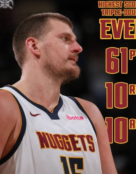 看到掘金队今天晒出的约老师上赛季单场61+10+10的数据,还挺感慨的,记得那场