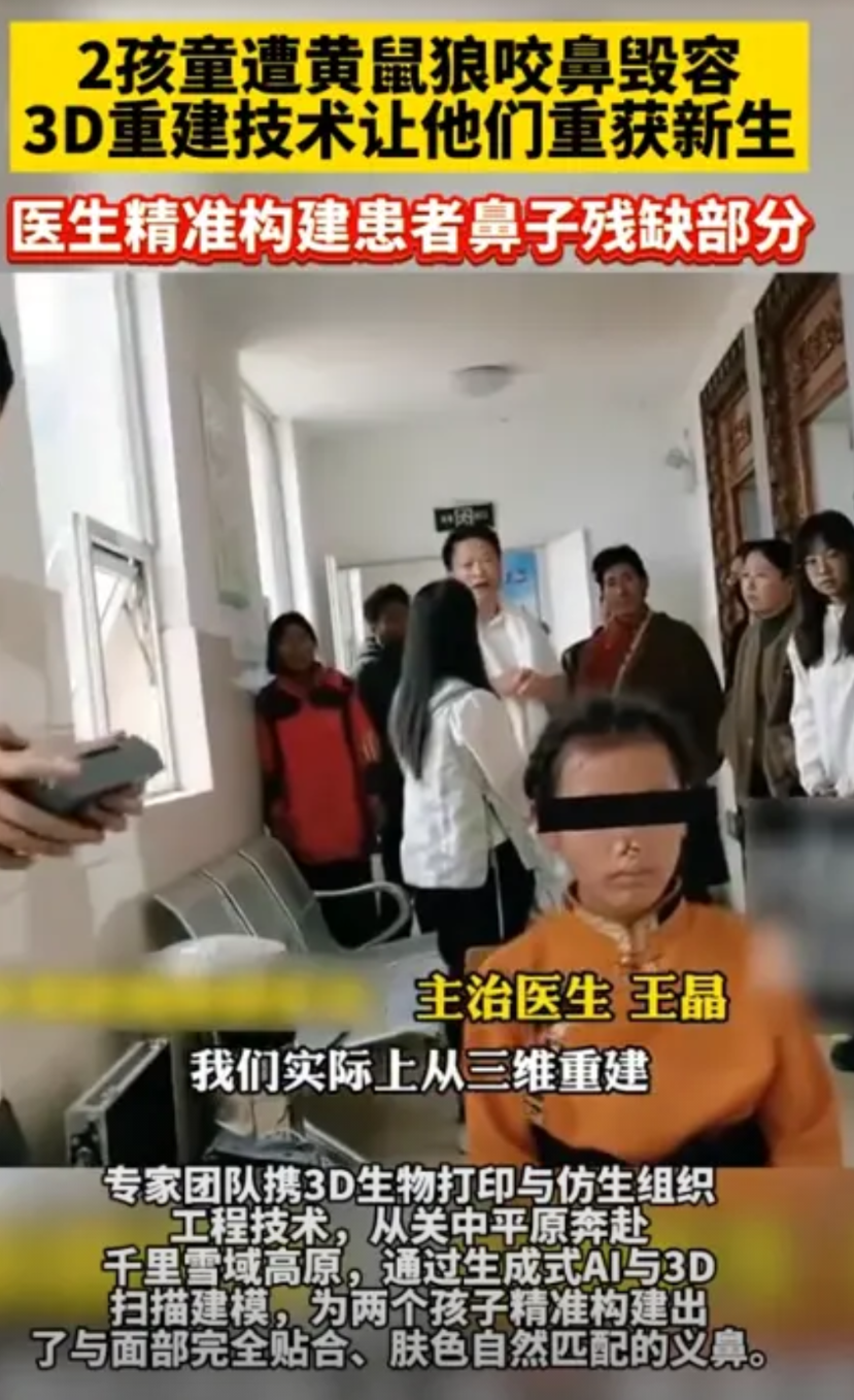 转机出现在今年8月。 西安交通大学及医疗领域的专家得知消息后,决定伸出援手。 此次救助行动负责人是西安交通大学正高级工程师,也是陕西麦克斯韦医疗科技有限公司创始人。 他带领团队,跨越千里,从关中平原赶到雪域高原。“我们不能让孩子一直活在阴影里,要用技术帮他们找回自信。” 依靠3D生物打印和仿生组织工程的最新成果,专家们先用仪器对孩子头部进行3D扫描。 扫描完成后,专家结合生成式AI和定制化工艺,精确打造出与孩子残存组织完全契合的义鼻模型。 在实验室里,工作人员一遍遍调整模型,力求完美。 制作义鼻时,要兼顾材质柔软度和佩戴舒适感,还要保证能与面部完美贴合。 定型时小心操作,确保形状稳定。 上色时,对照孩子肤色,一点点调出最自然的颜色。经过层层工序,义鼻终于完成。 当专家轻轻为卓玛和拉姆戴上义鼻时,孩子们盯着镜子,眼里闪着泪光,嘴角慢慢上扬,露出久违的笑容。 “太神奇了,就像我的鼻子一直都在一样。”拉姆激动地说。 周围牧民们围过来,看着焕然一新的孩子,纷纷竖起大拇指,对专家的技术赞不绝口。 这次救助,不仅改变了他们的外貌,也点亮了内心世界。 孩子们不再害怕面对人群,开始主动打招呼,对未来充满希望。 网友得知后,也纷纷点赞:“这就是科技的力量,为生命带来光明。”“看到孩子笑了,心里暖暖的,为专家团队点赞。” 专家团队表示,孩子们在成长到成年期间,如需更换义鼻,团队会全程免费提供。 他们还计划联合更多公益组织,关注偏远地区医疗救助,让更多孩子通过科技重获新生。