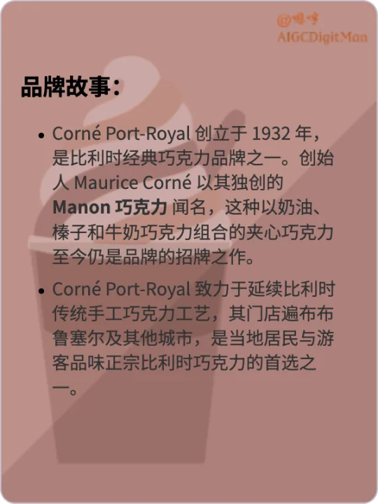Corné Port-Royal 创立于 1932 年,是比利时经典巧克力品牌之一。