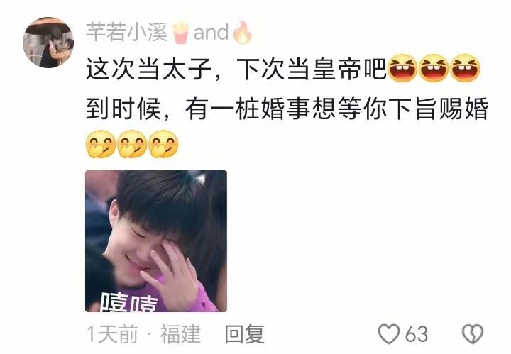 太搞笑了!肖凯文说我这又是捅了什么马蜂窝了吗?虽然感觉有点疯不过我挺喜欢的。 凯文可能把评论区翻了一个遍就图一的能回复一下,剩下的是一个都不敢回呀!看来这太子也不好当啊,一群怂恿他谋权篡位的,还有一群要助他上位的,竟然全是为了想让他赐一桩婚事儿。 笑不活了,还有的更加过份,不但想赐婚,还想让人家早日生龙凤双胞胎的。这届网友真是为莎头操碎了心呀!