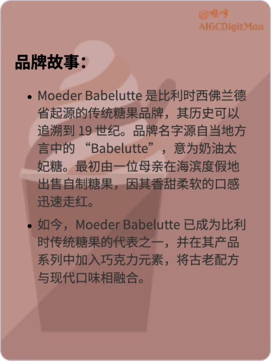 Moeder Babelutte 是比利时西佛兰德省起源的传统糖果品牌,其历史可以追溯到 19 世纪。