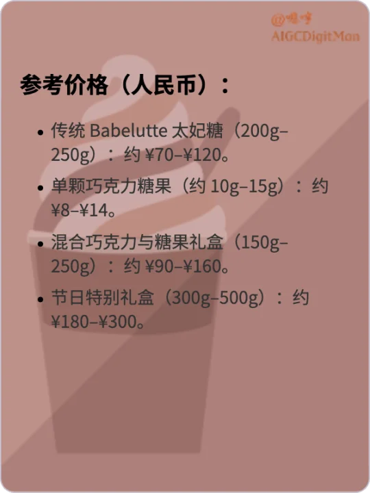 传统 Babelutte 太妃糖(200g–250g):约 ¥70–¥120。
